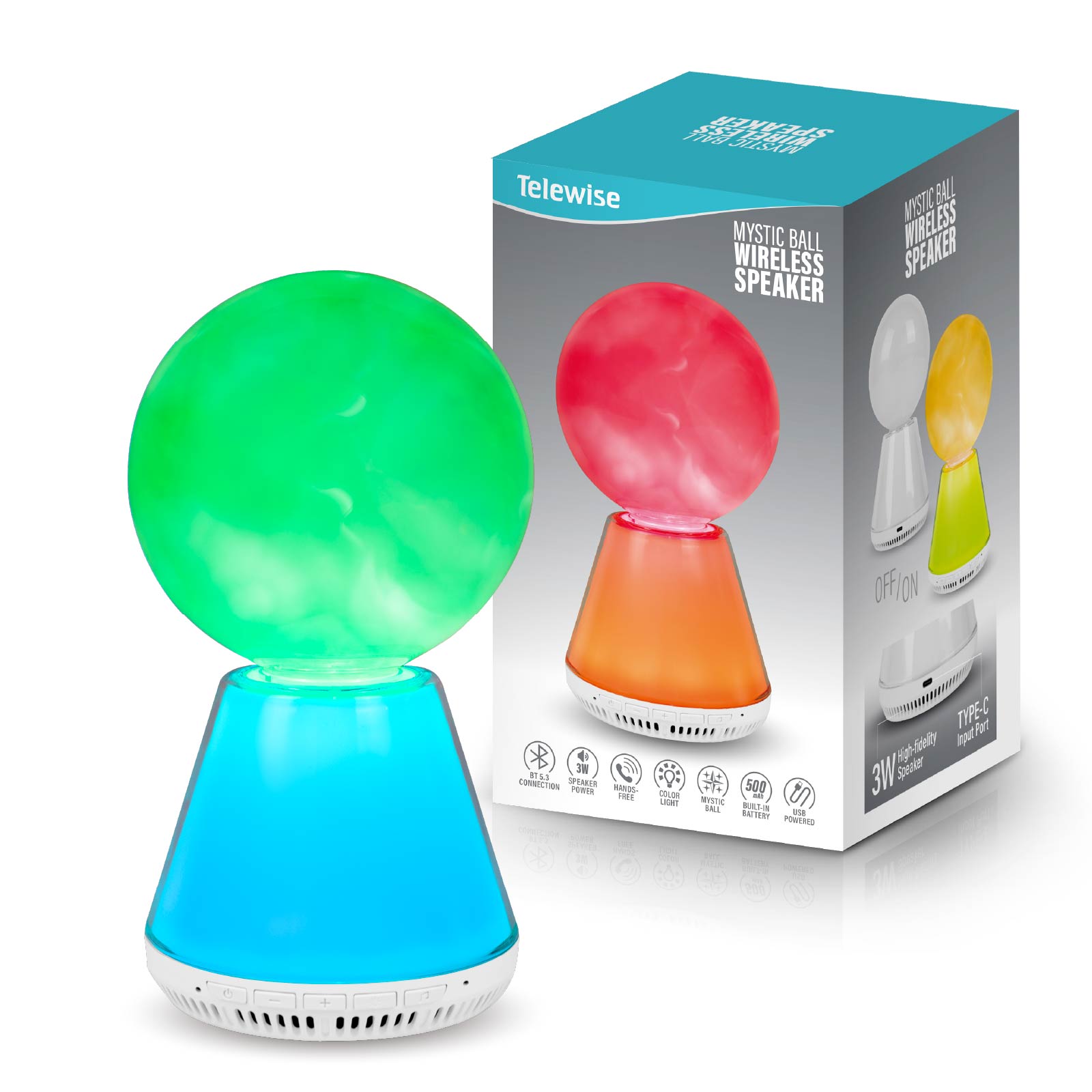 BT03-400This speaker, with its spherical top and tapered base, is a visual delight. It emits vibrant, colorful lights while delivering crisp audio, creating a magical ambiance for your space. Perfect for elevating your listening experience with both sound and style.