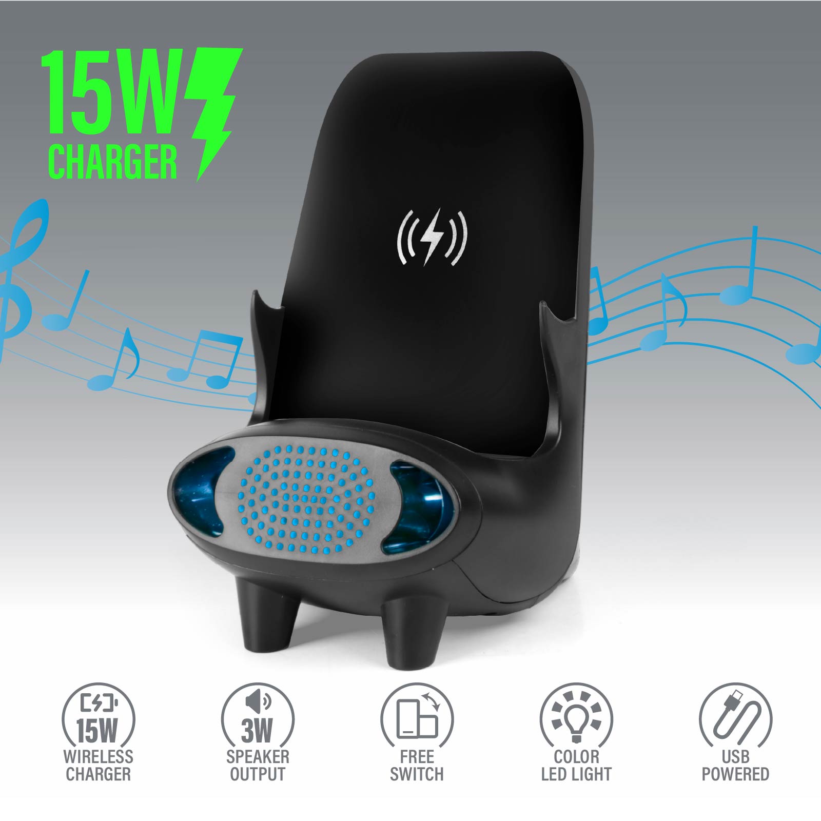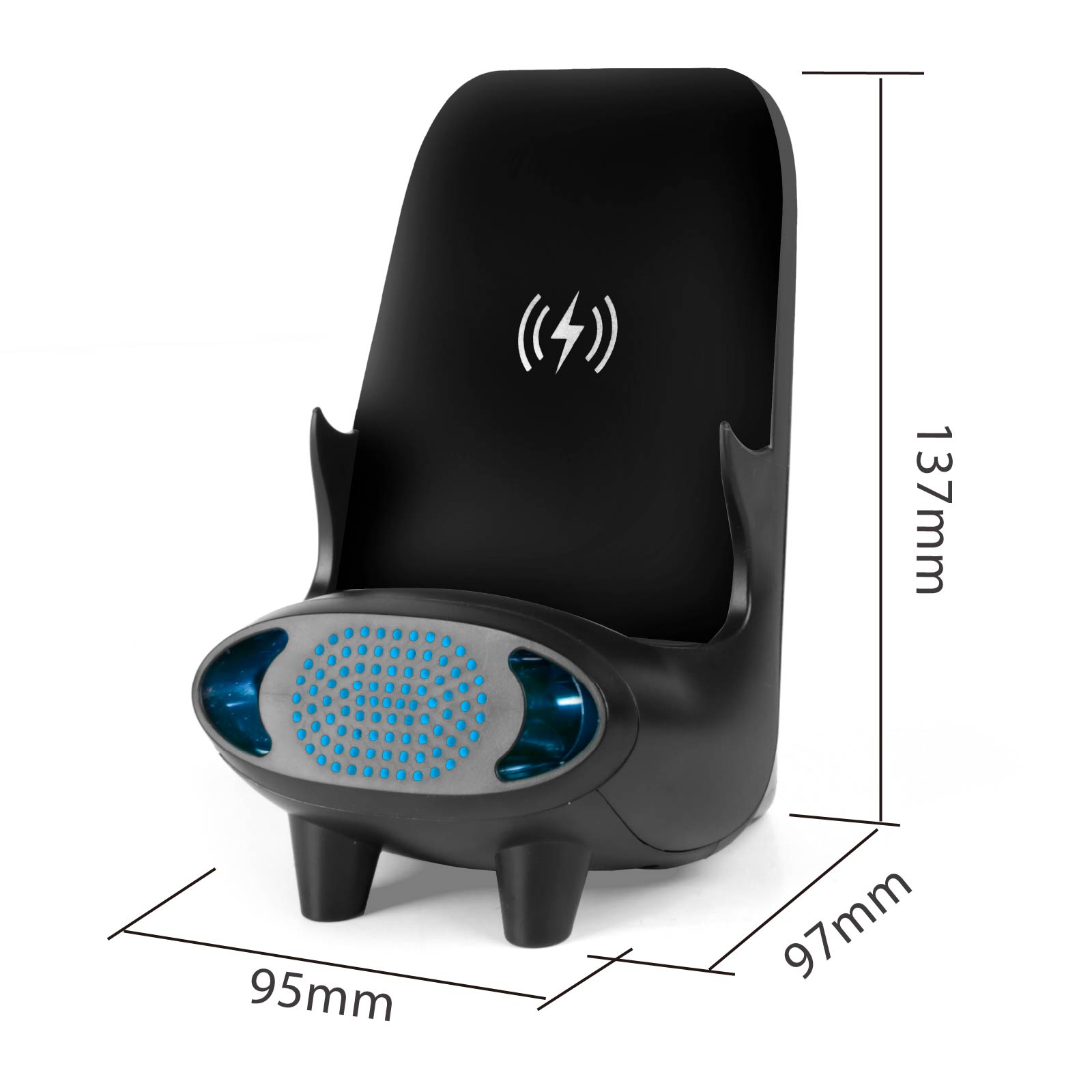 - Function : Bluetooth Speaker, RGB Dynamic Colors & Night Light, Wireless Charger, USB Powered.