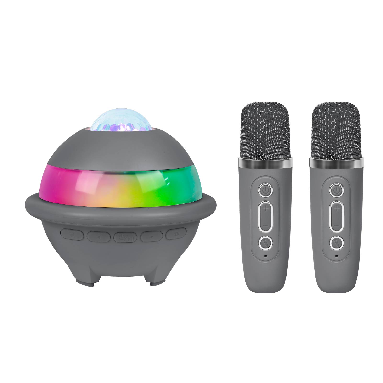 - Function : Bluetooth Speaker, Color Mood Light, Color Projector, TF Card, AUX, Wireless Microphone, Built-in Rechargeable Battery, USB Powered