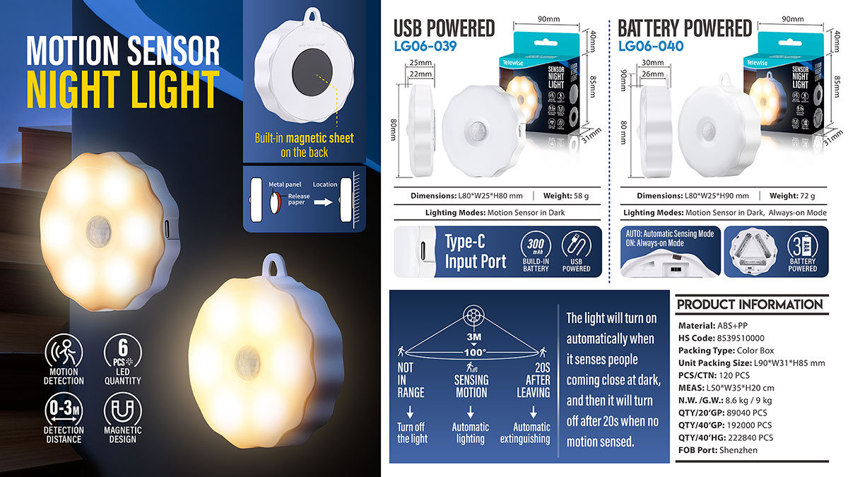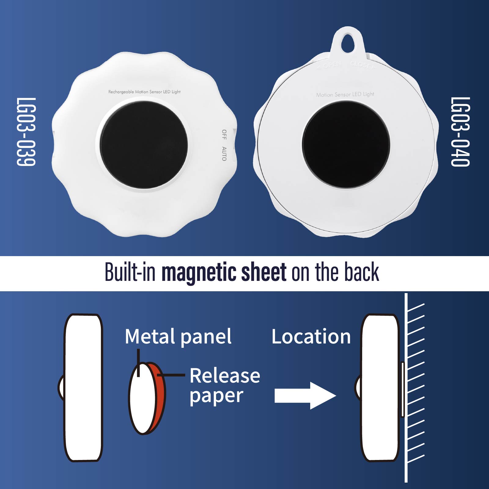 - Function : Motion Sensor in Dark, Magnetic Design, Built-in Rechargeable Battery, USB Powered.