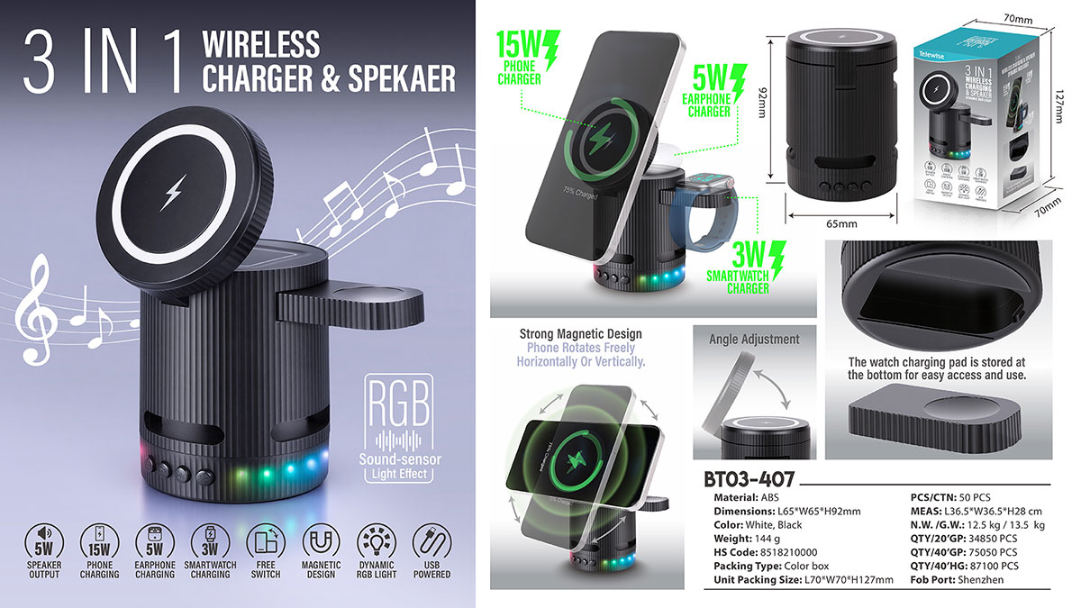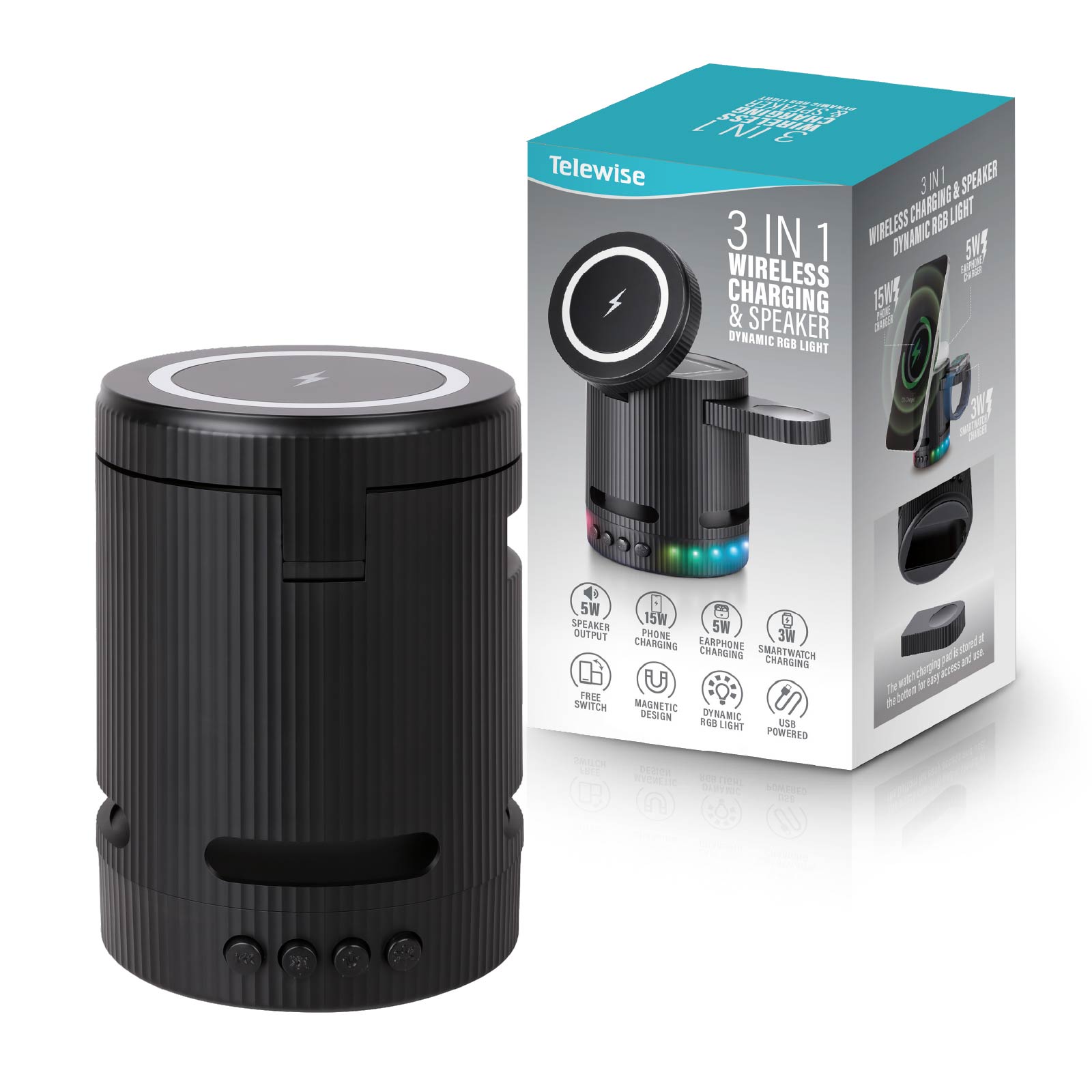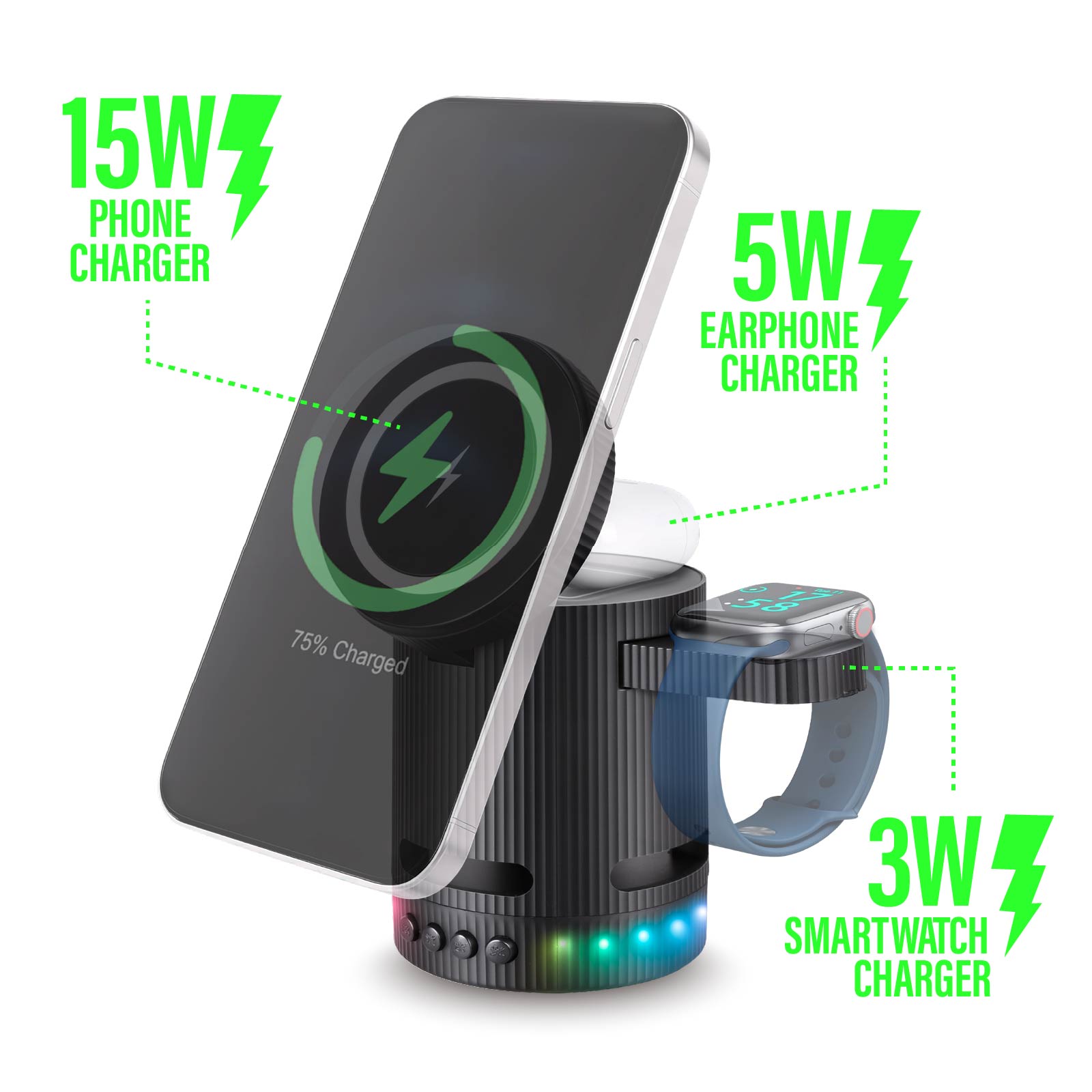 3 IN 1 RGB Wireless Charging & Speaker with Phone Stand