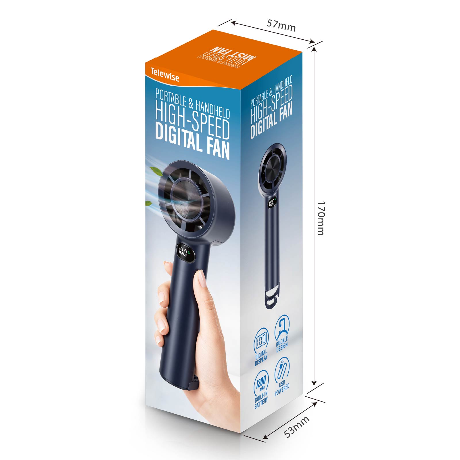 - Function : Digital Display, Brushless Motor, Adjustable Fanspeed, Hook Design, USB Powered, Built-in Rechargeable Battery