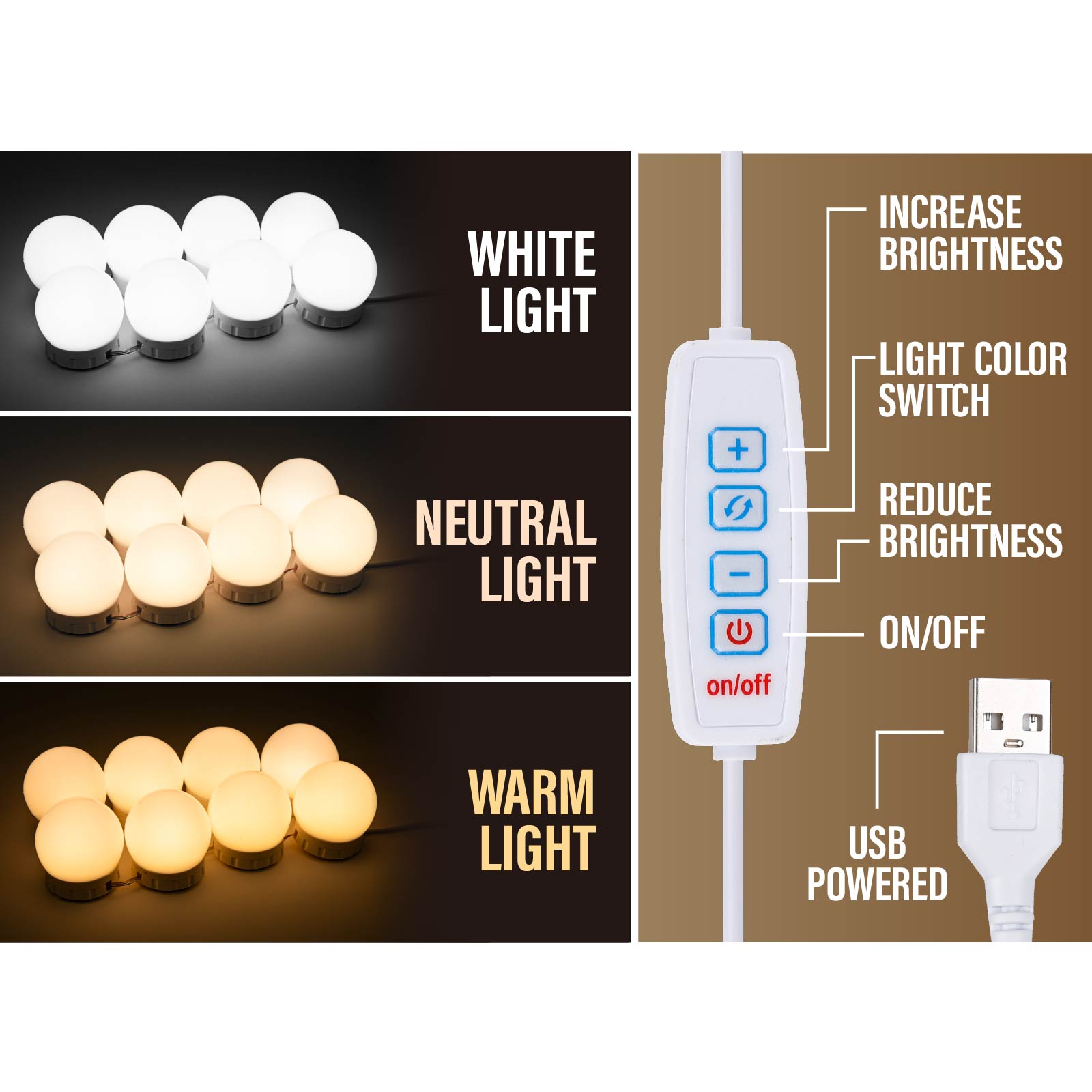 - Function : Dimming Light, Control-in-line, USB Powered.