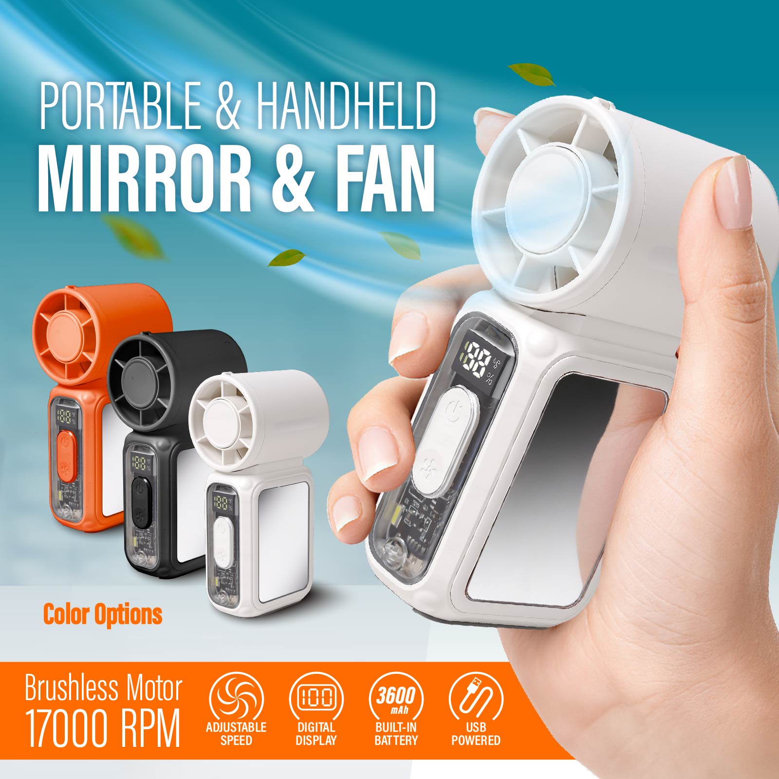 FA01-018This 2-in-1 handheld fan with a built-in mirror is your ultimate on-the-go companion. Beat the summer heat with cool breezes, and touch up your makeup anytime, anywhere. Compact, portable, and stylish—perfect for travel, commutes, and daily outings!