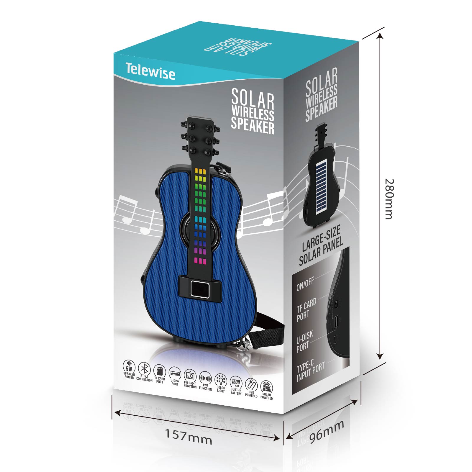 BT03-413A guitar that Sings !Wireless Bluetooth speaker, sound & style in one. Function: Bluetooth Speaker, TF Card Port, U-Disk Port, FM Radio, TWS, Built-in Rechargeable Battery, USB Powered, Solar Powered.
