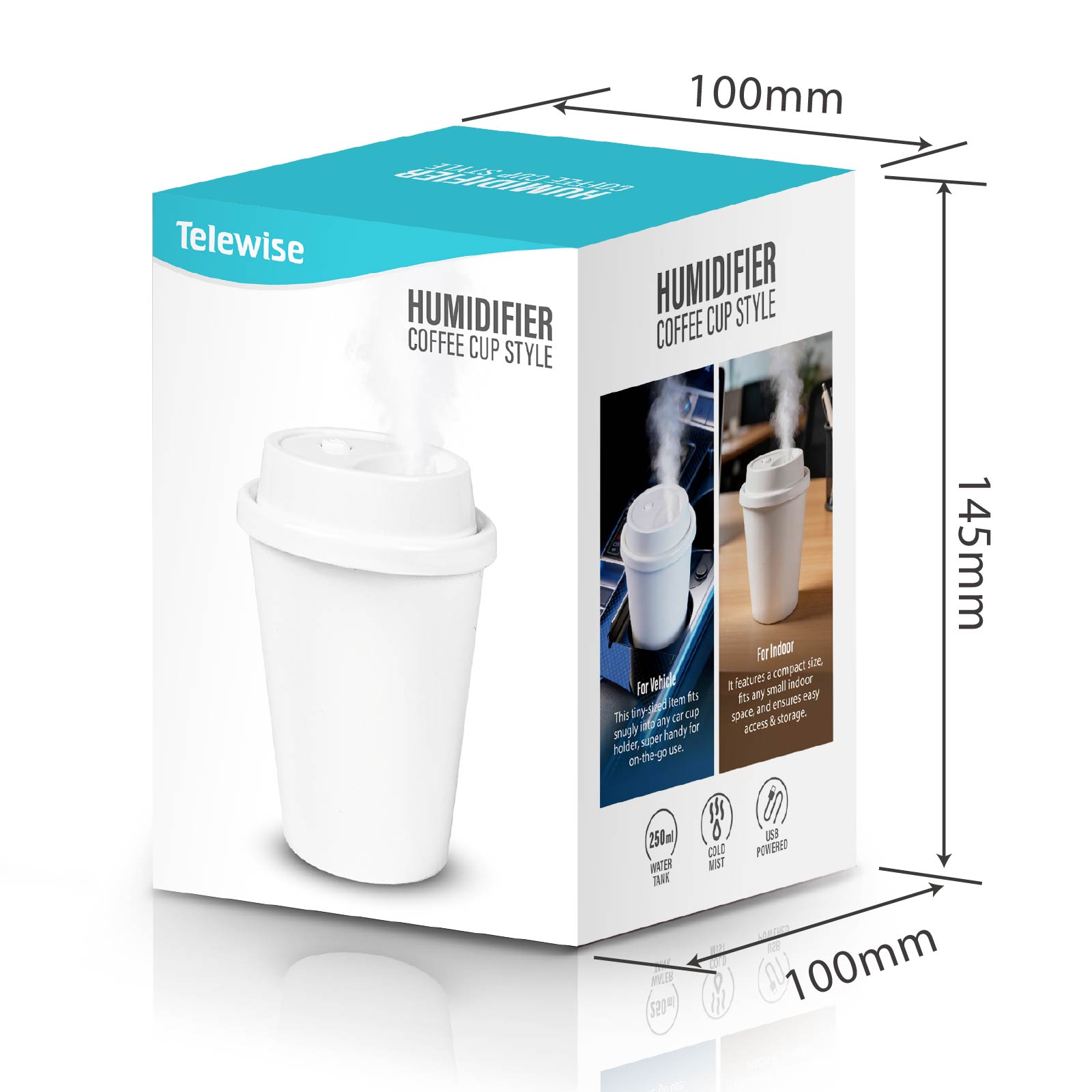 - Function : Cold Mist, Blue indicator light, USB Powered