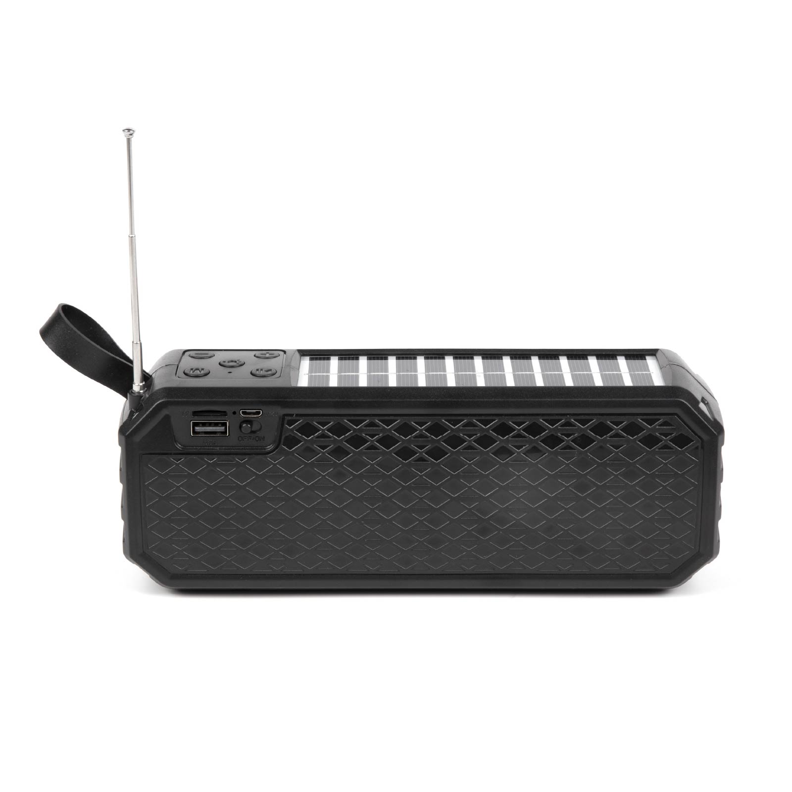 - Function : Bluetooth Speaker, FM Radio, TF Card Port, U-Disk Port, TWS, Hands-free Calling, Flashlight, Solar Powered, Built-in Rechargeable Battery, USB Powered.