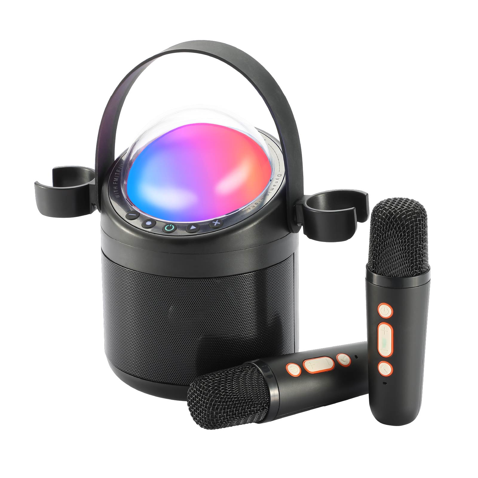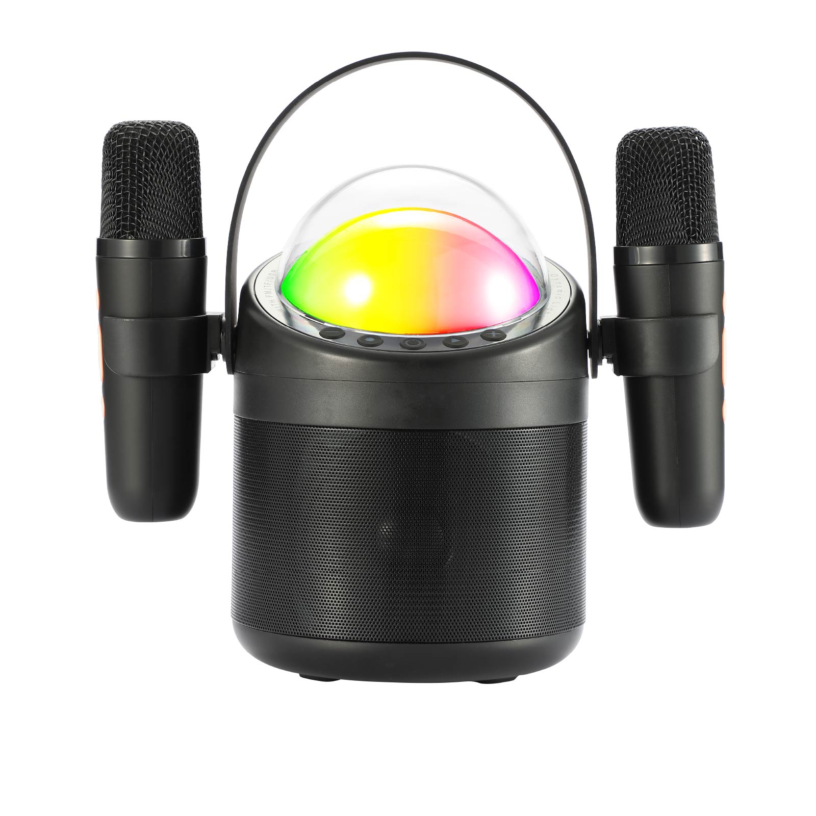 - Function : Bluetooth Speaker, Dual Wireless Microphones, U-Disk Port, TF Card Port, FM Radio (88-108 MHz), Selfie Function, Super Bass, RGB Light, Built-in Rechargeable Battery,USB Powered