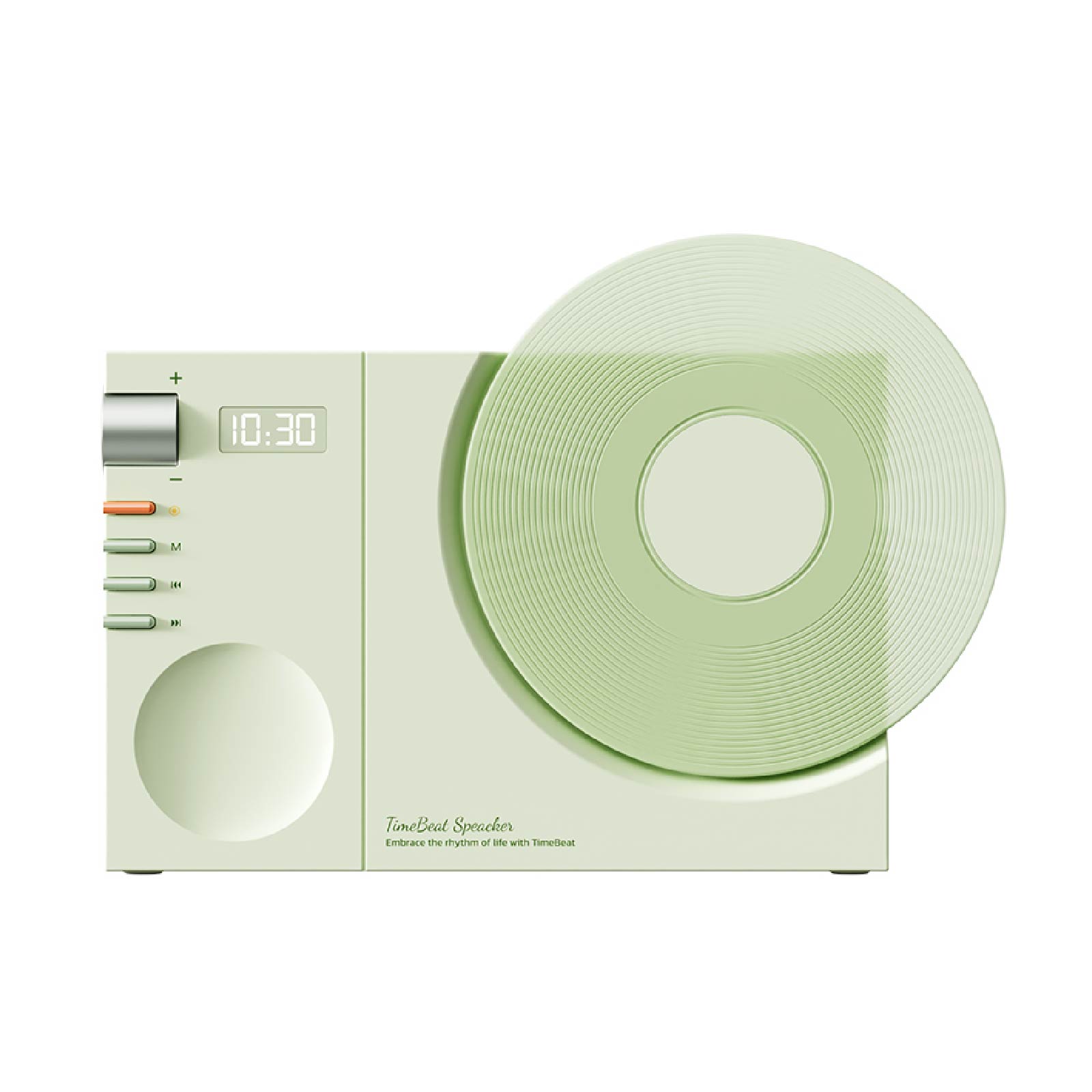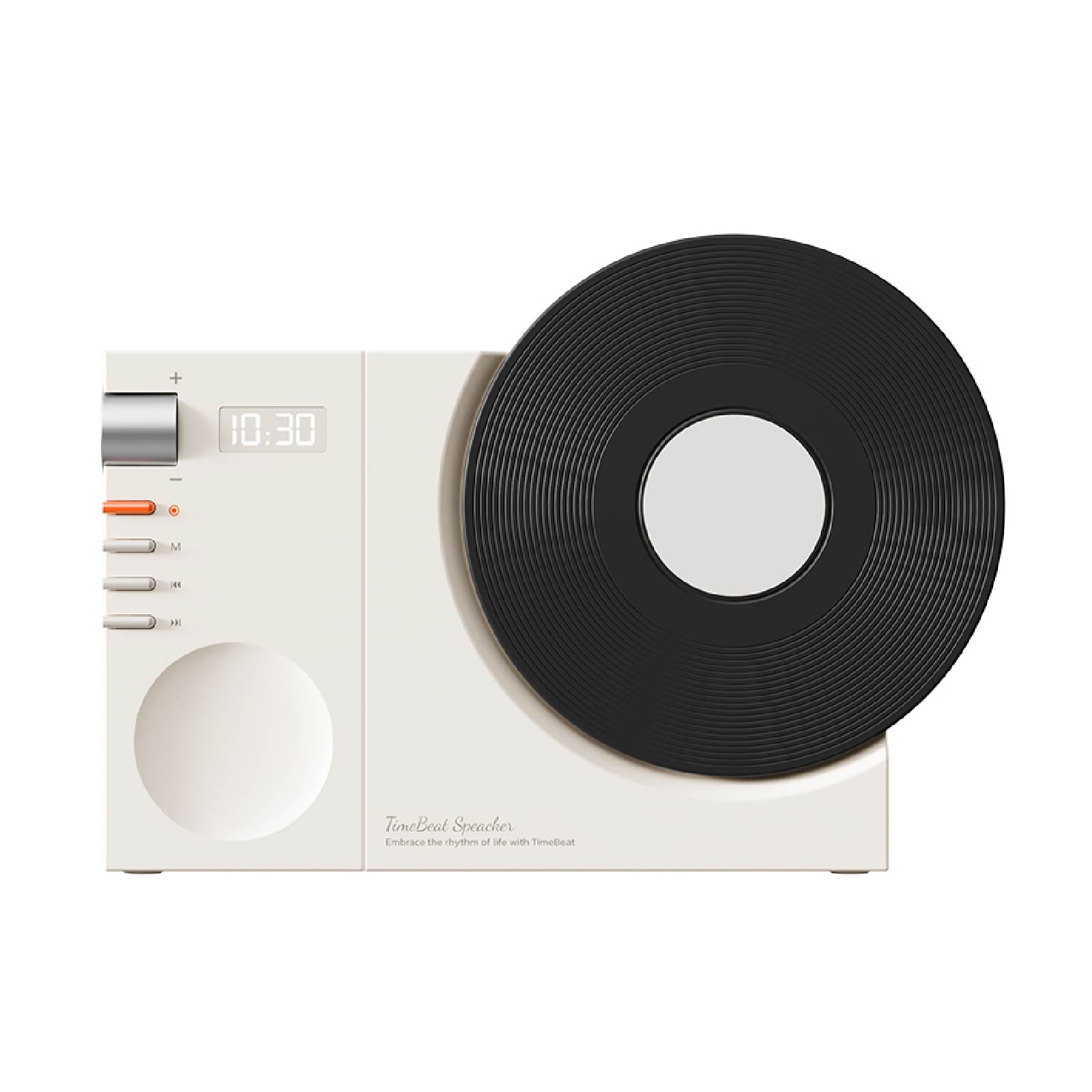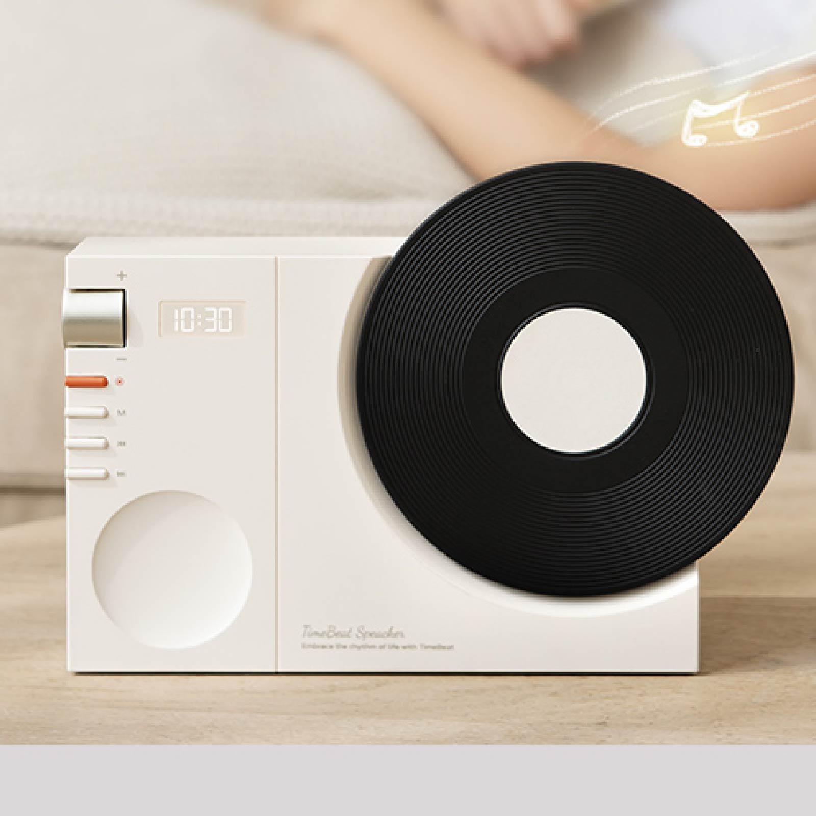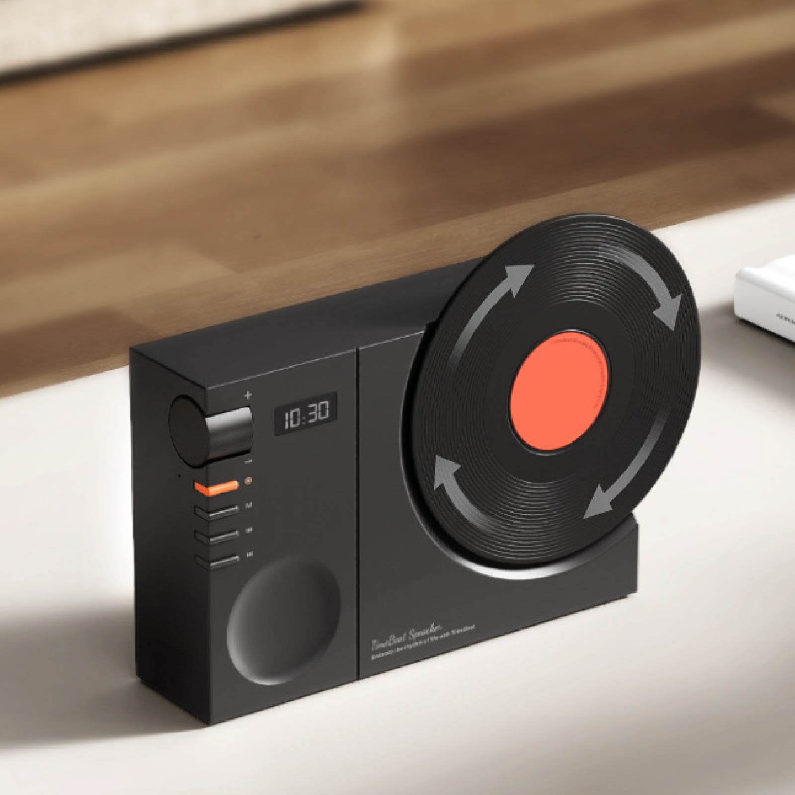 - Function : Bluetooth Speaker, Clock Display, 360° Rotating Vinyl Design, Built-in Rechargeable Battery, USB Powered