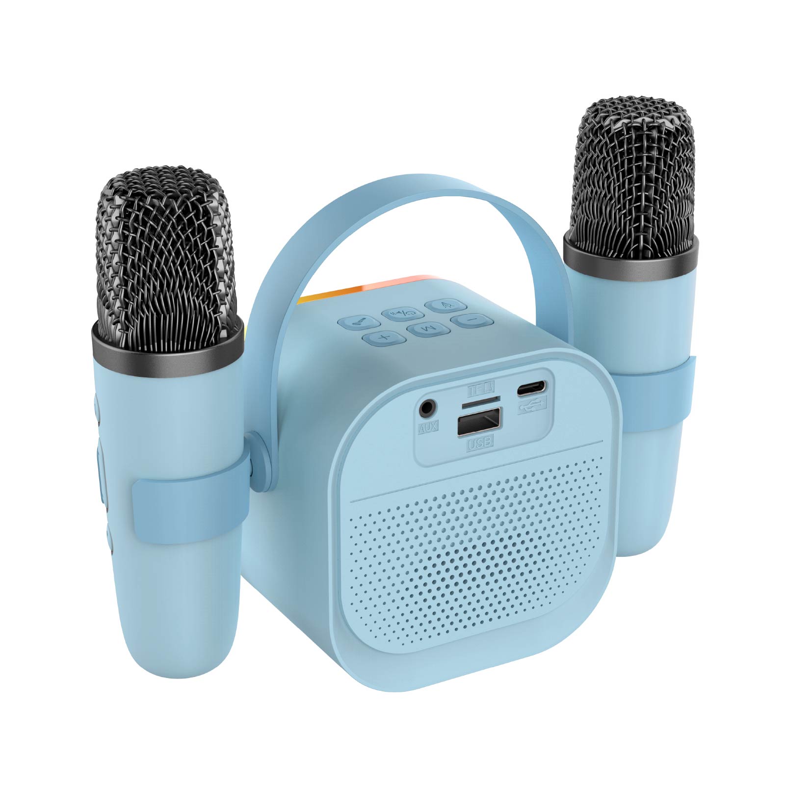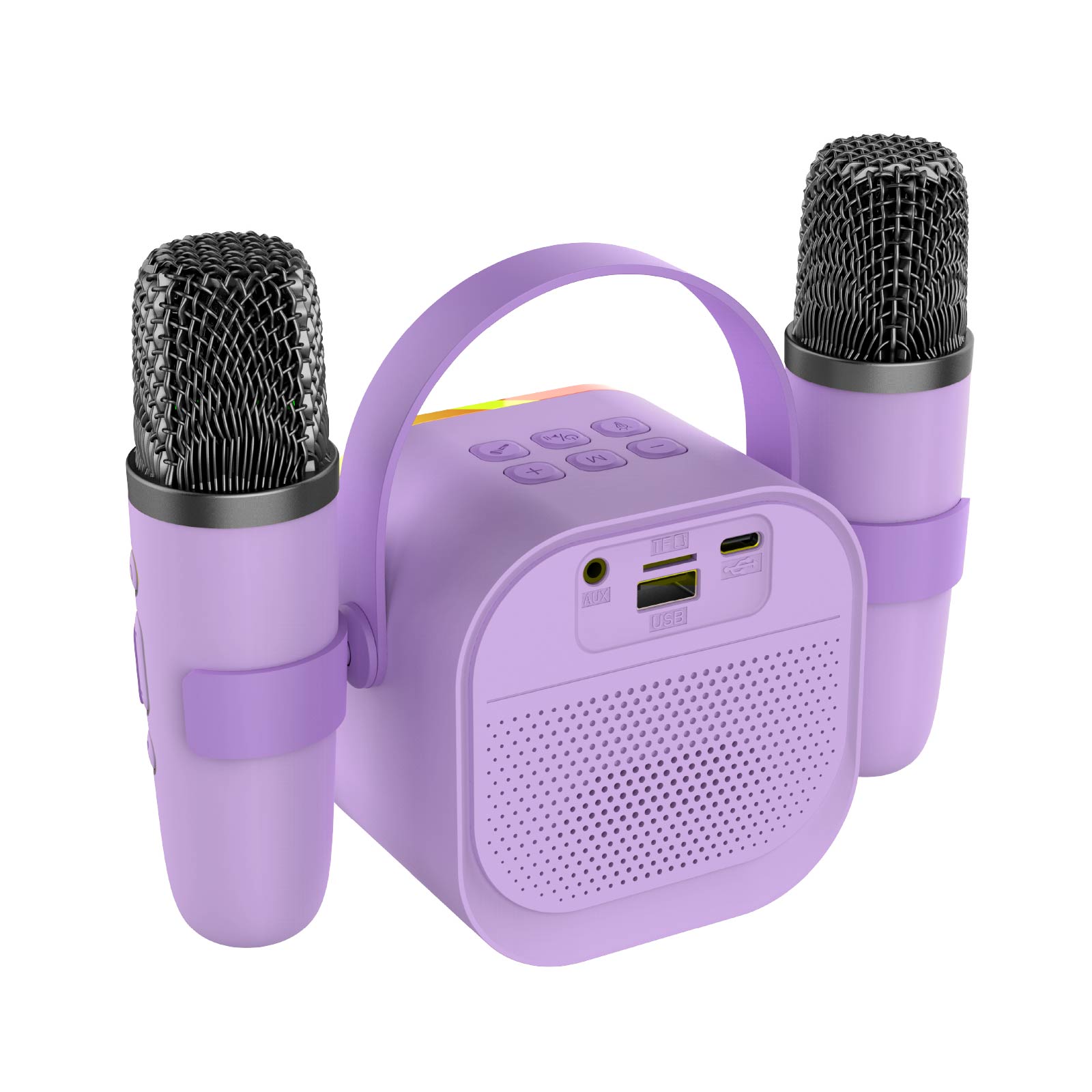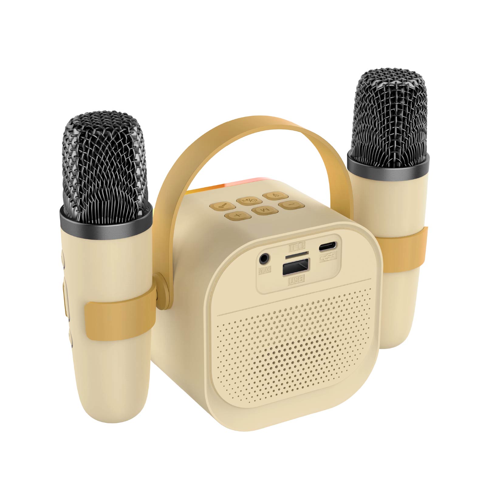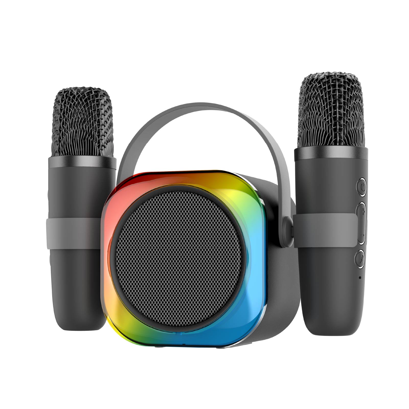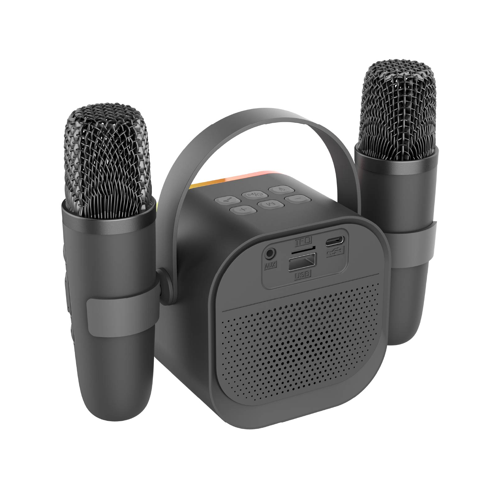 - Function : Bluetooth Speaker, TF Card Port (Max 32G), AUX Port, U-Disk Port, Karaoke Dual Microphones, Recording Playback, FM Radio , Built-in Rechargeable Battery, USB Powered.