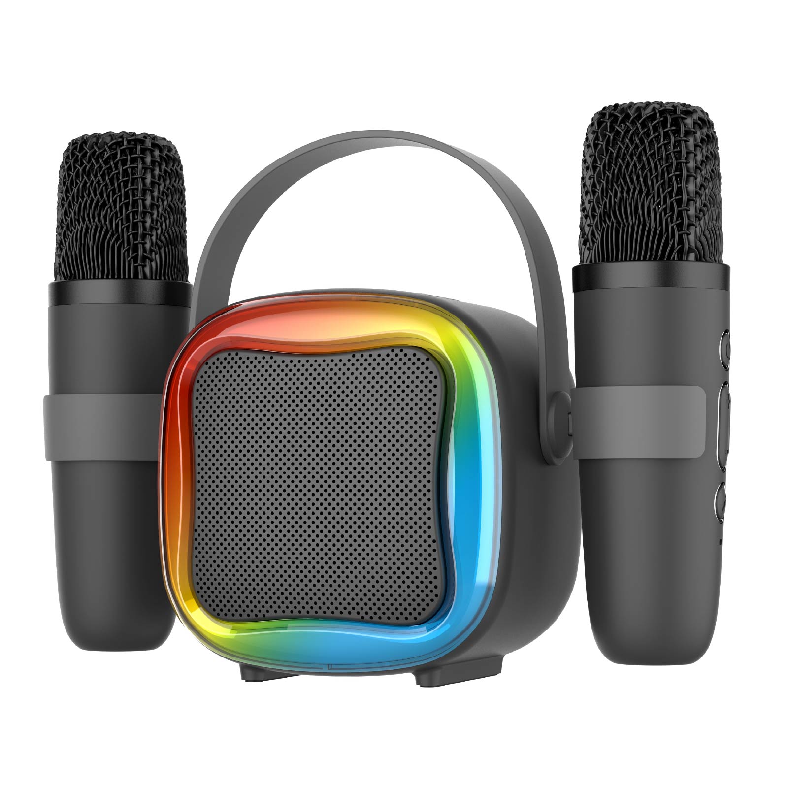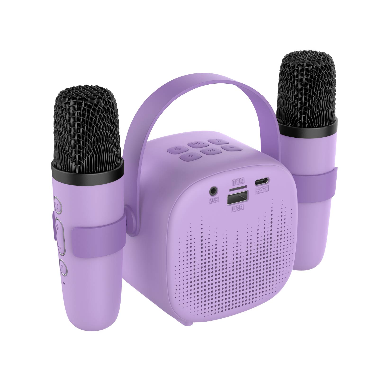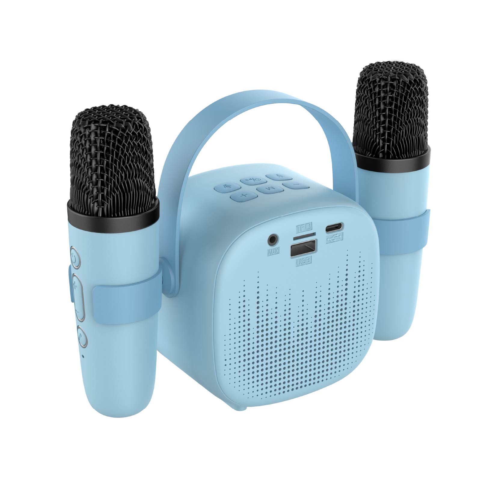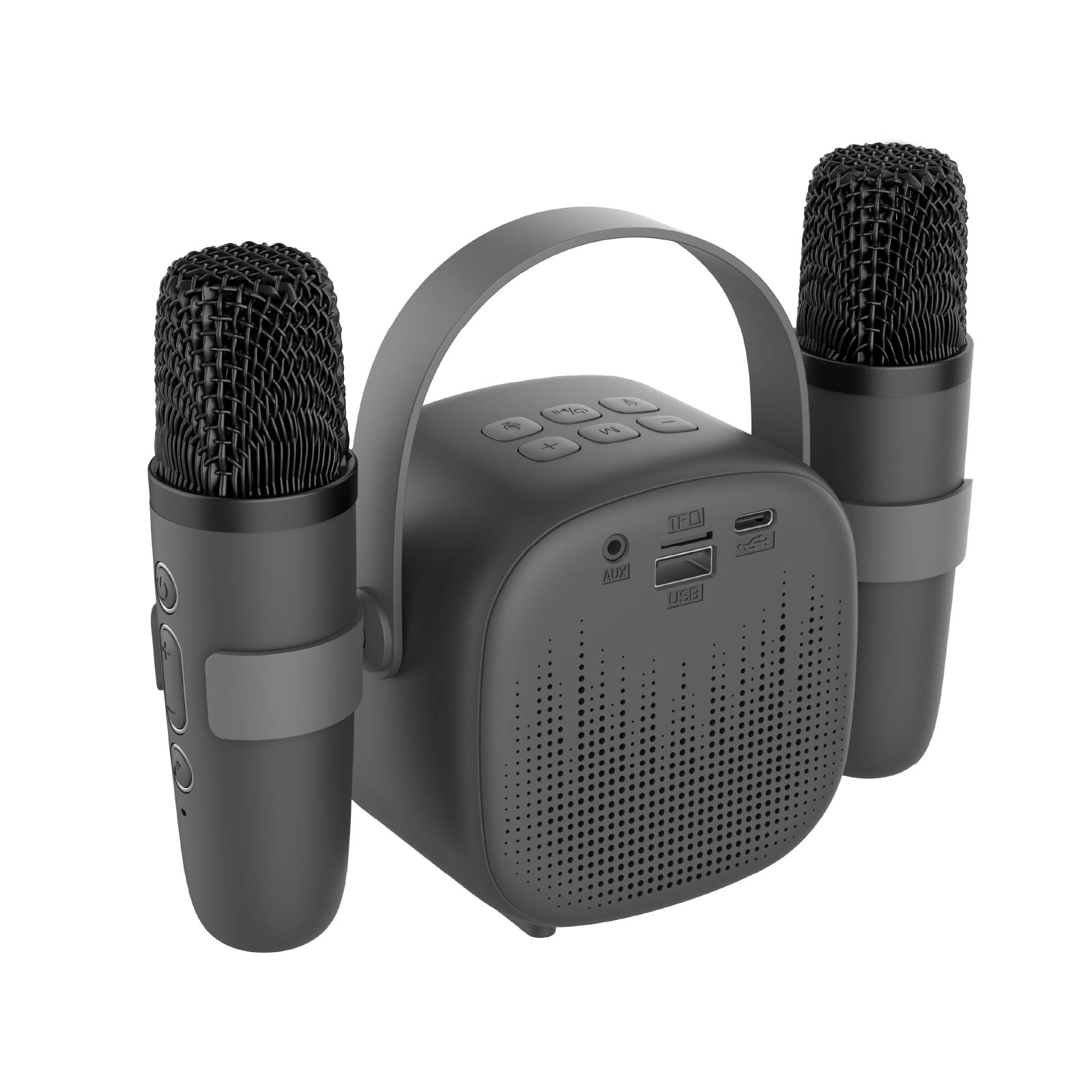 - Function : Bluetooth Speaker, TF Card Port (Max 32G), AUX Port, U-Disk Port, Karaoke Dual Microphones, Recording Playback, FM Radio , Built-in Rechargeable Battery, USB Powered.