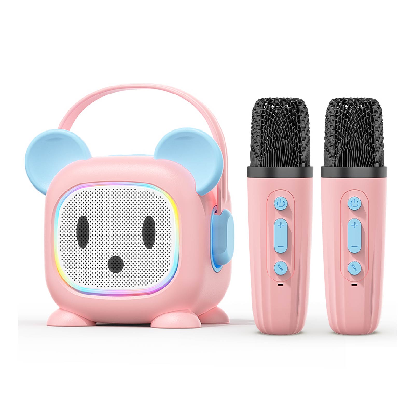 - Function : Bluetooth Speaker, TF Card Port (Max 32G), AUX Port, Karaoke Dual Microphones, Recording Playback, Parent-child Interaction, Built-in Rechargeable Battery, USB Powered.