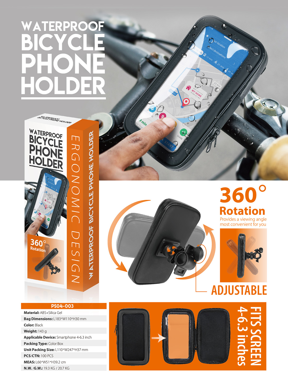 PS04-003Easy way to mount any phone to your bike. use on a backpack, stroller, atv. protected, waterproof and secure!