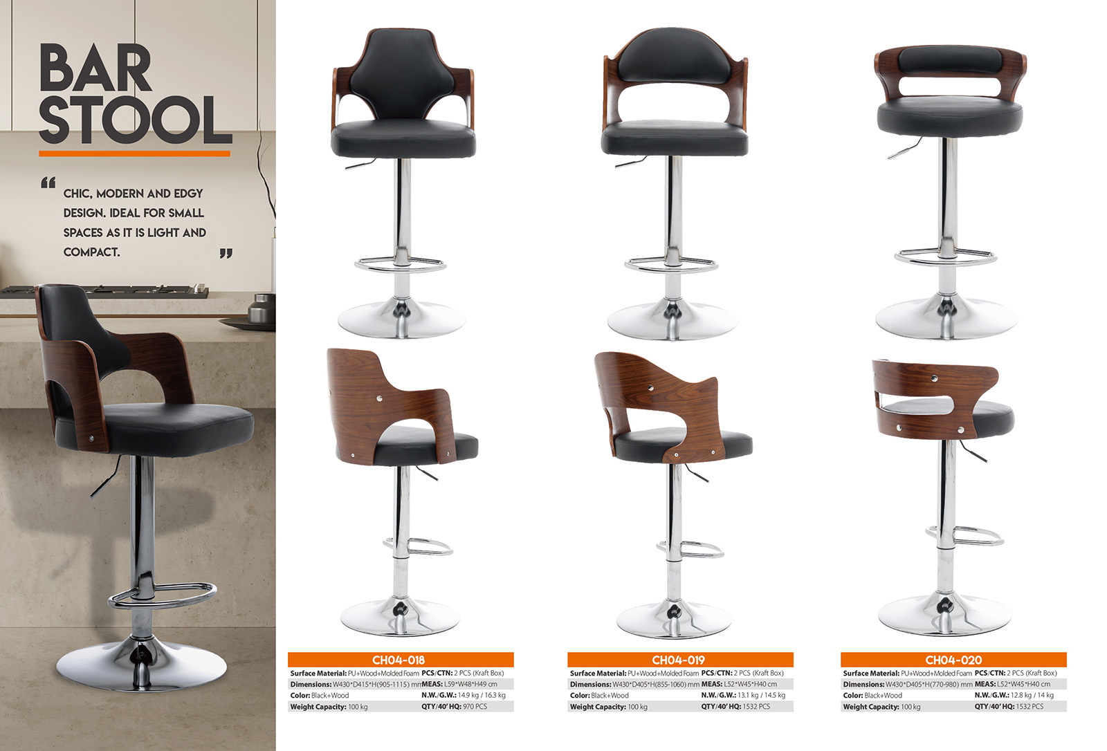 CH04-018Utilize the easy-to-use lever right below the seat to adjust to your preferred height! Bring a polished look to your space, backed up by functional durability. With a timeless simple design that fits in with both modern and classic interiors. Chic, modern and edgy design. Ideal for small spaces as it is light and compact. Contemporary style fits nicely in your home kitchen or dining room. Bring you more convenience and comfortable experience.