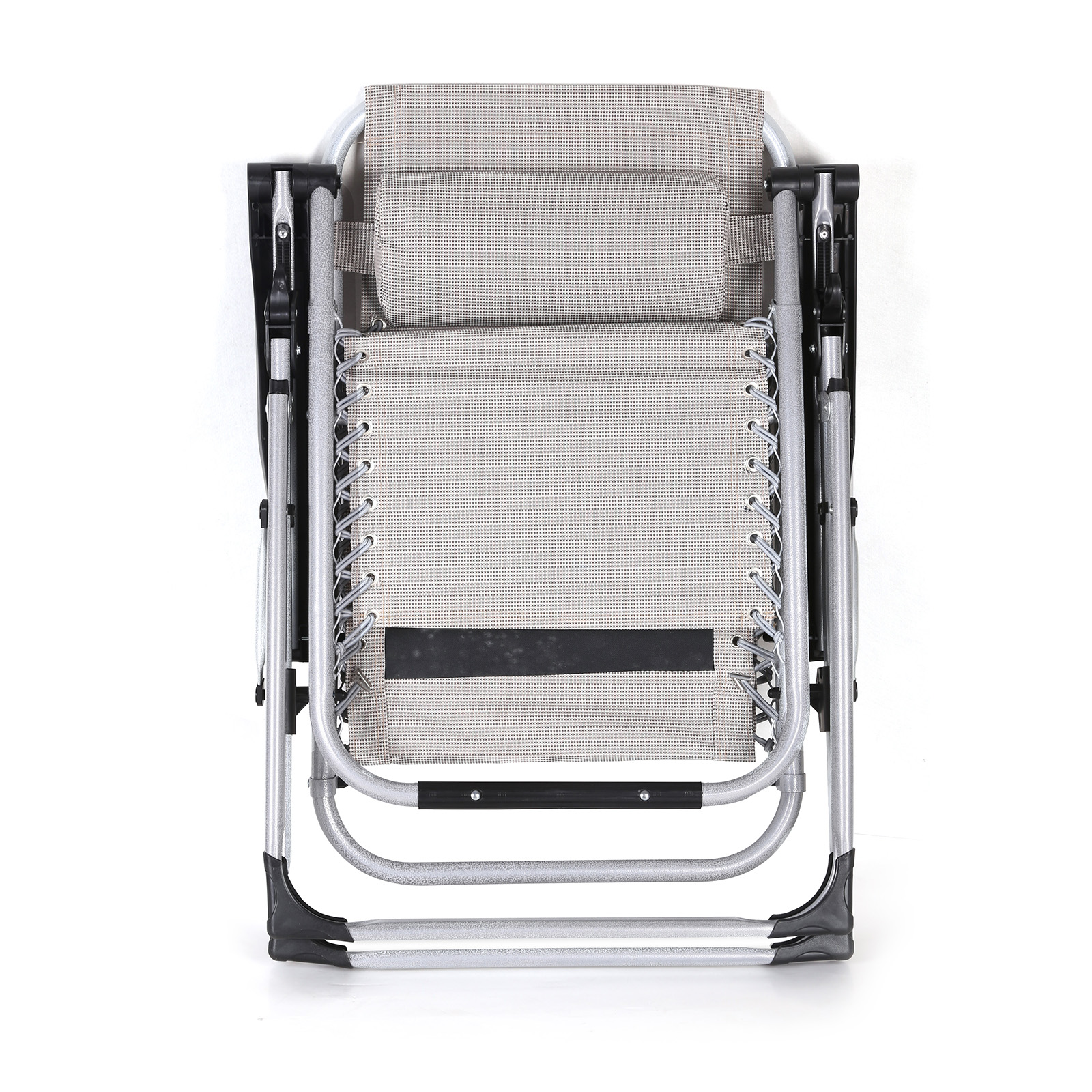 LS03-004This chair is built with quality textilene mesh, a sturdy steel frame, and a comfortable removable pillow. Designed with a lockable reclining system, this chair adjusts comfortably to your body. An effortless folding mechanism provides easy transportation and compact storage.