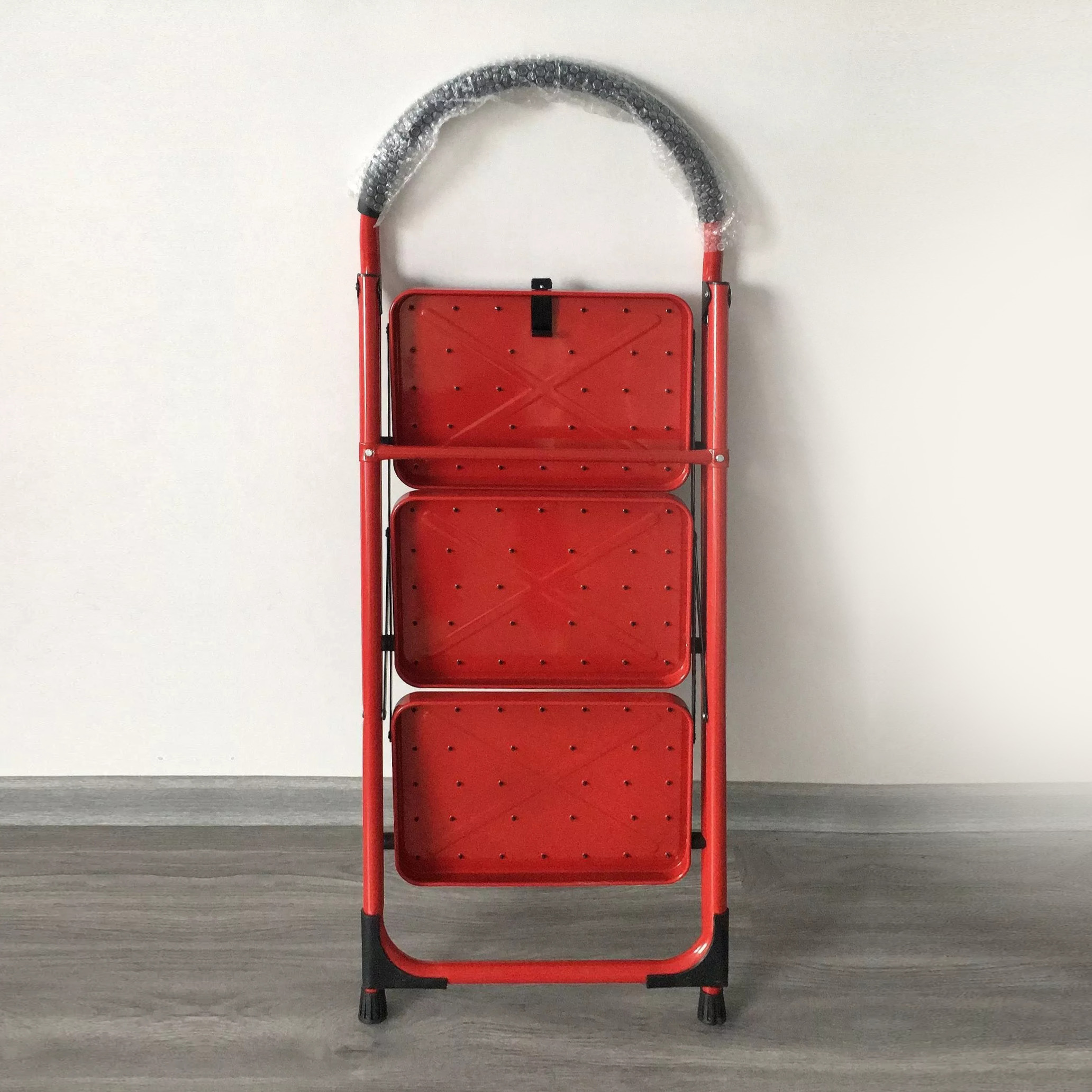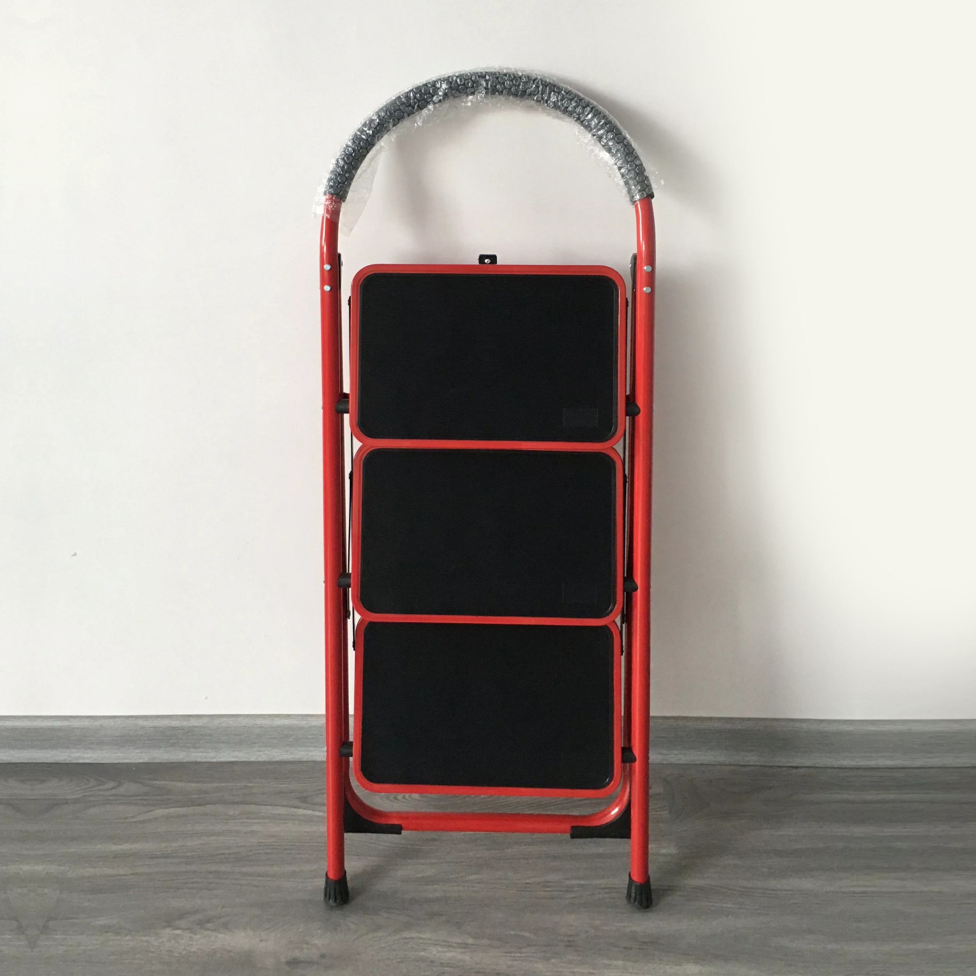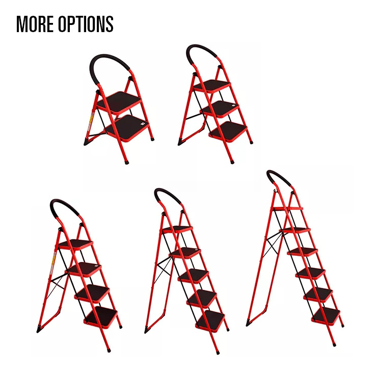 TL02-002Ladder’s steps and tube are made of high quality steel/light and easy to move. Small size after folding can be stored conveniently. Handrail with cotton let the use more comfortable. Big wider step with non-slip mat effect/big buffer catch the floor very well.
