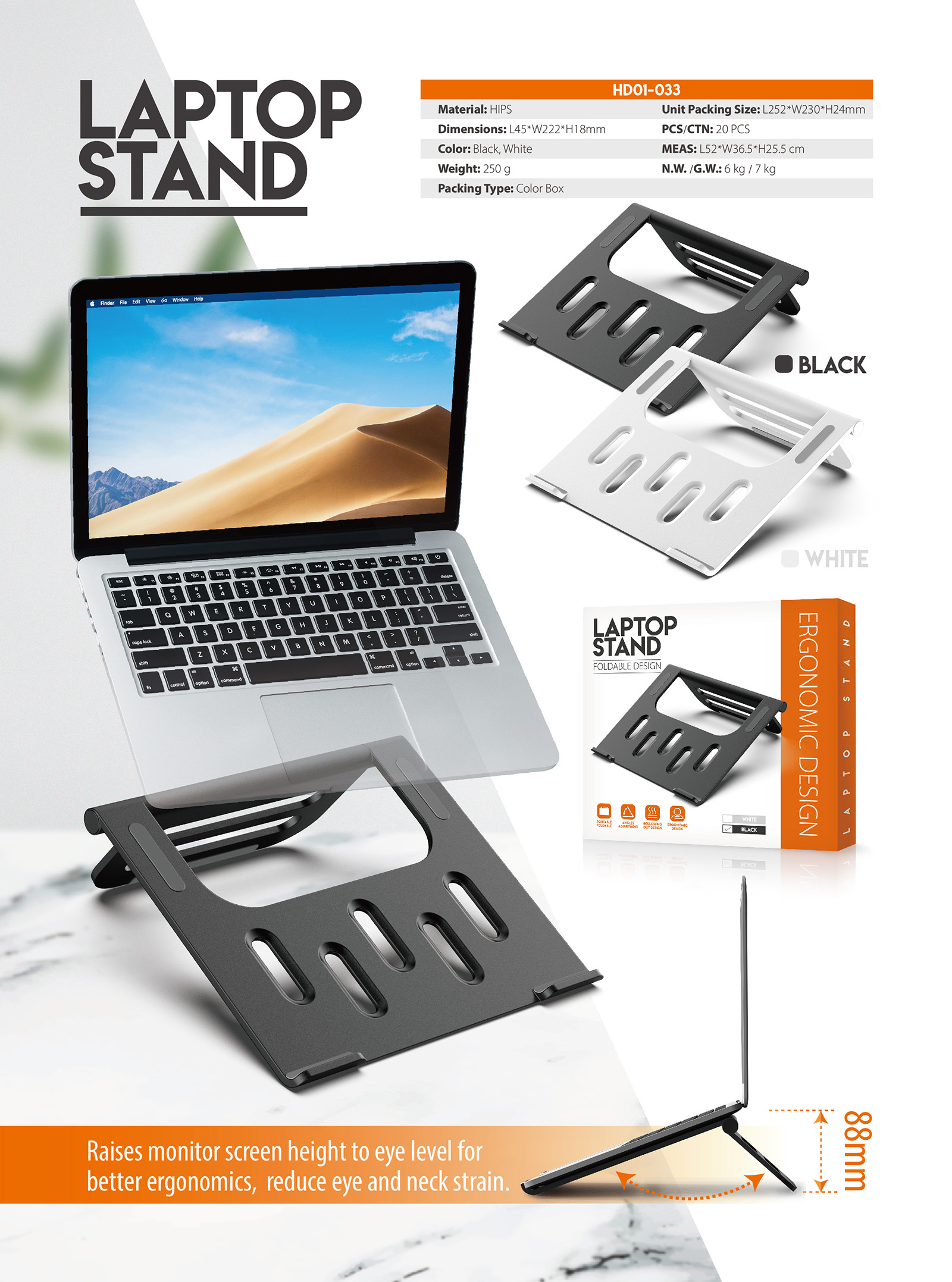 HD01-033Angle adjustment, for optimal viewing position, compatible laptop, tablet, mobile phone, book. Raises monitor screen height to eye level for better ergonomics, reduce eye and neck strain.