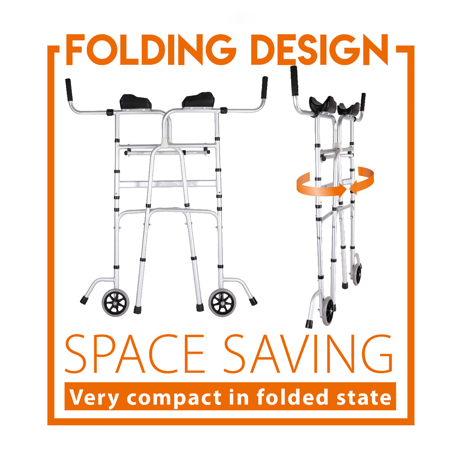 SA01-002An adult walker that easily folds for transportation and height adjustable. The mobility walker is very light and maneuverable and has sides that detach for storing in tight spaces.
