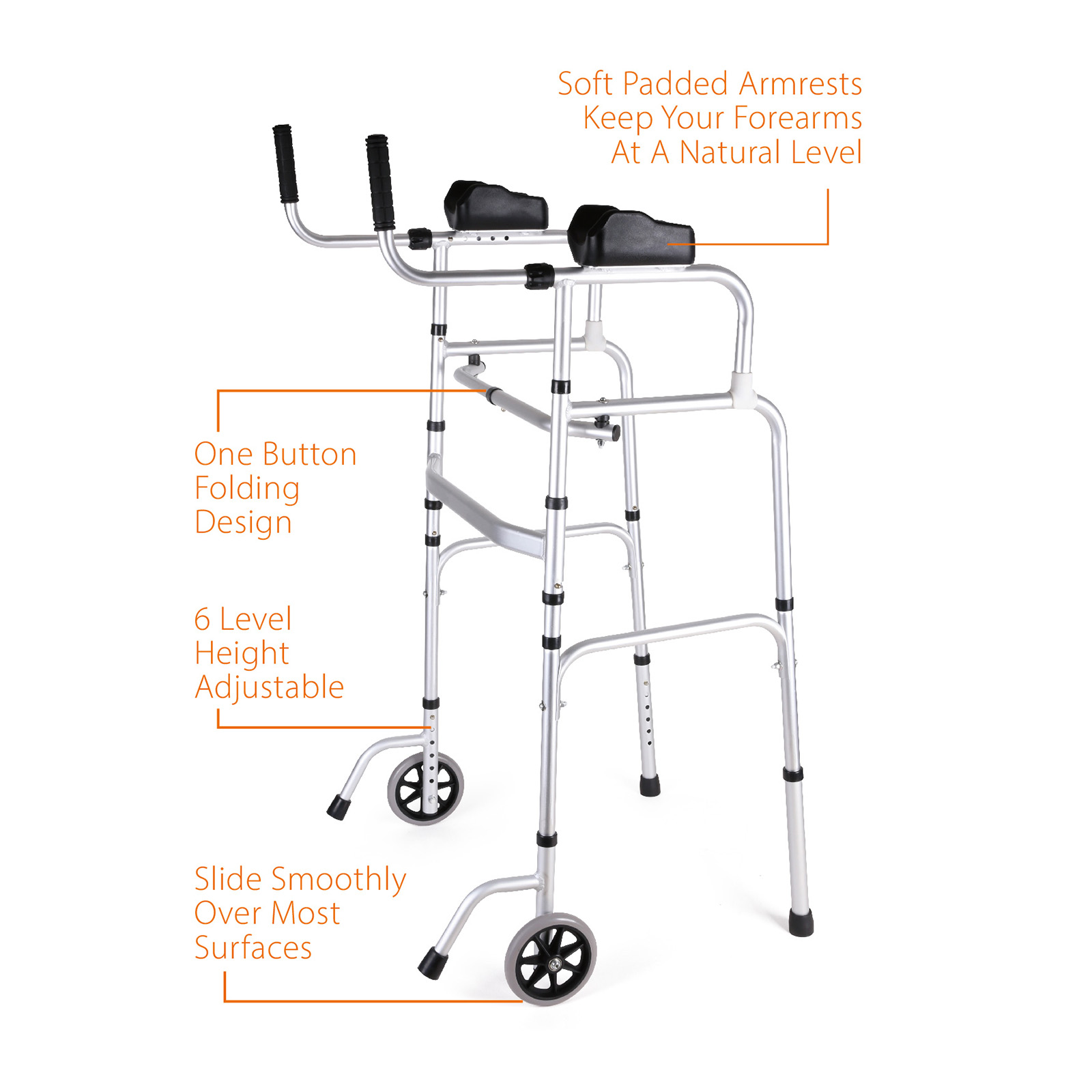 The wheeled walker to slide smoothly over most surfaces