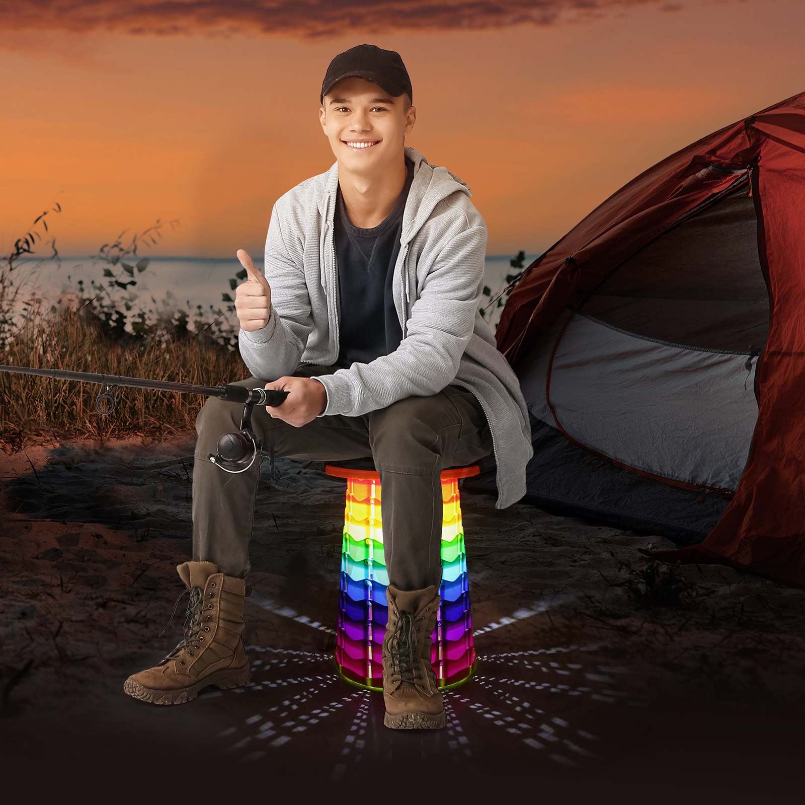 Telescopic Folding Stool with Lamp