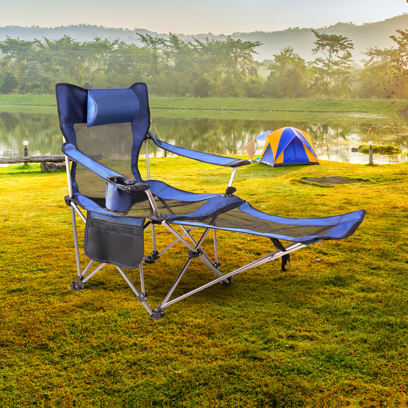 LS03-006This chair is built with quality textilene mesh, a sturdy steel frame, and a comfortable removable pillow. Designed with a lockable reclining system, this chair adjusts comfortably to your body. An effortless folding mechanism provides easy transportation and compact storage.