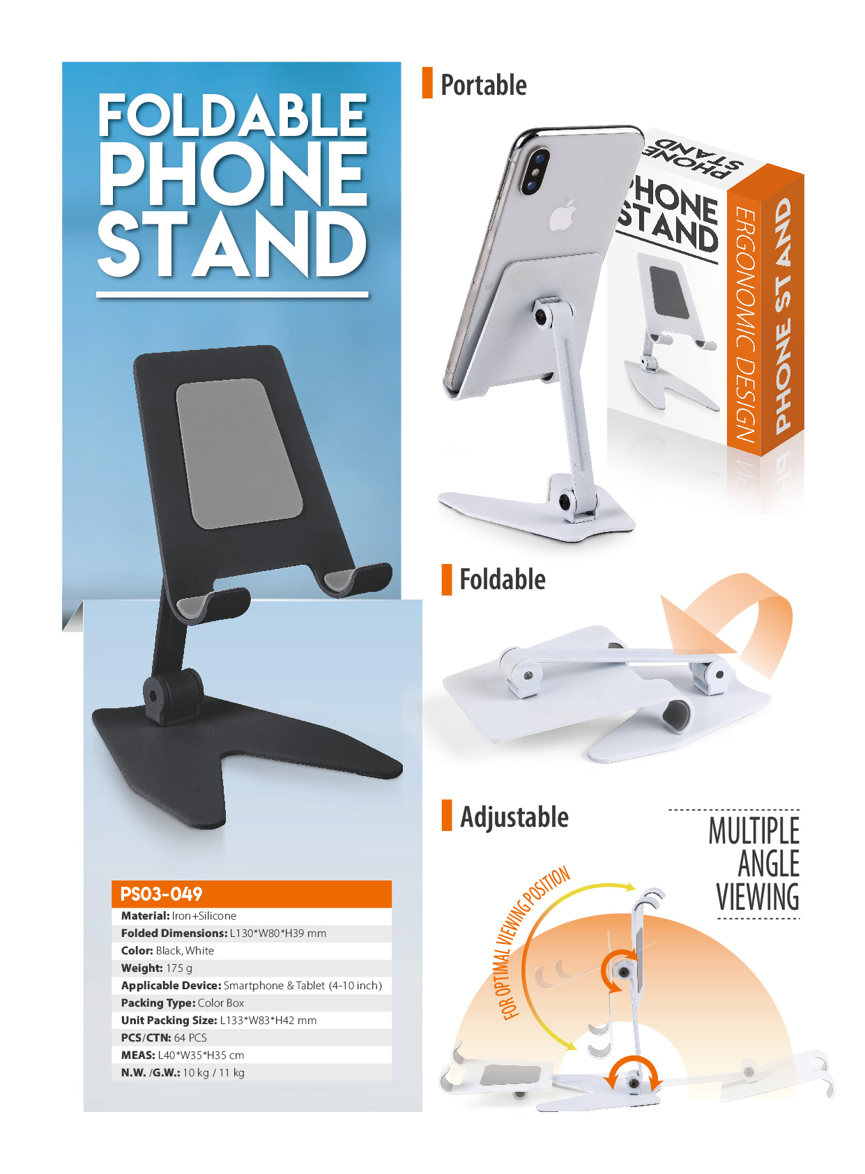 PS03-049You can make your device at optimal viewing position with angle adjustment function. Ideal for watching videos, reading, video recording, or simply browsing the web. Foldable design allows for easier carrying during travel coupled.