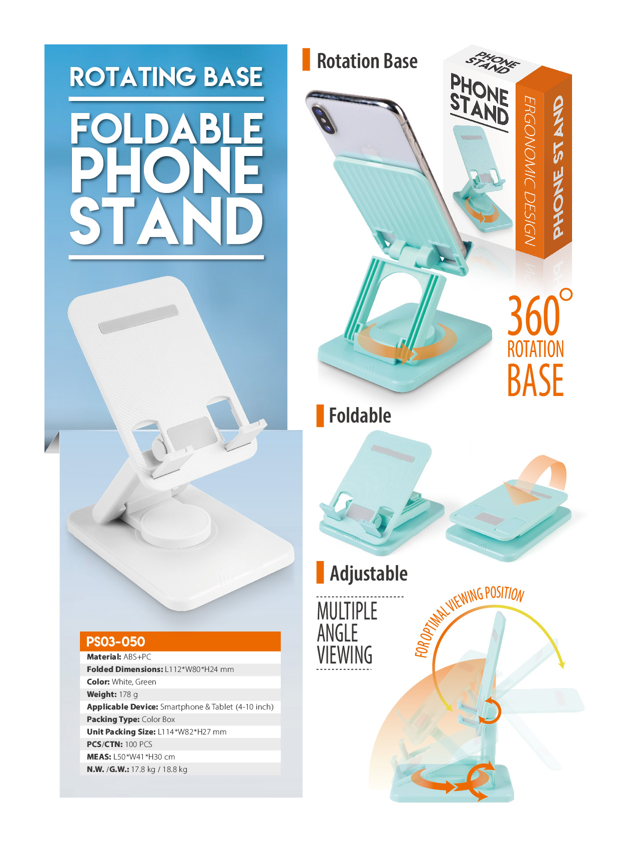 PS03-050You can make your device at optimal viewing position with angle adjustment function. Ideal for watching videos, reading, video recording, or simply browsing the web. Foldable design allows for easier carrying during travel coupled.