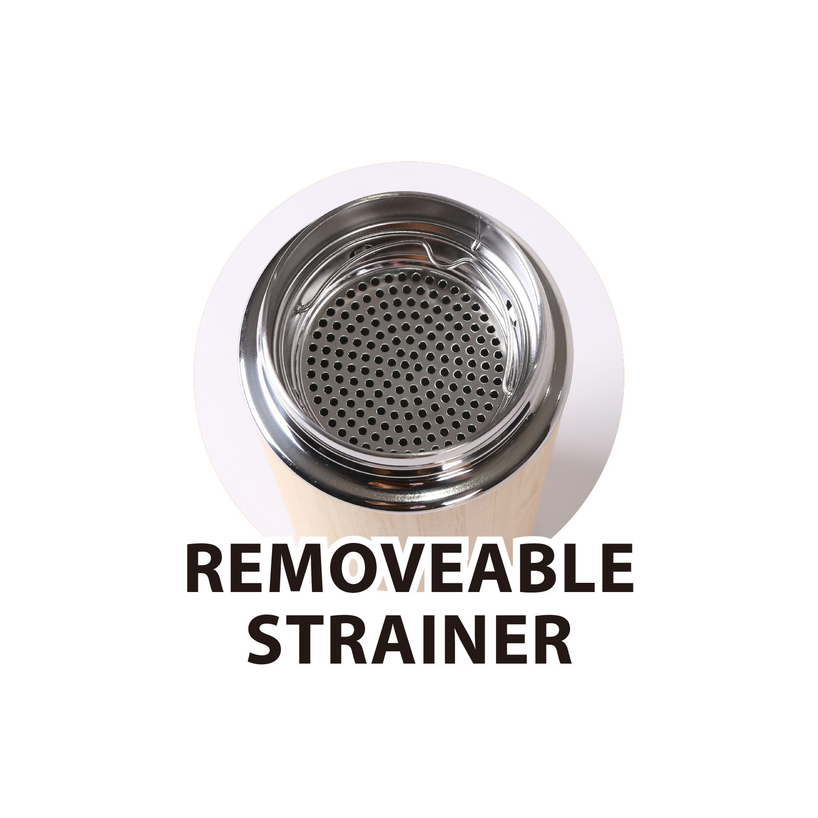 Bamboo Vacuum Cup with Handle & Removeable Strainer