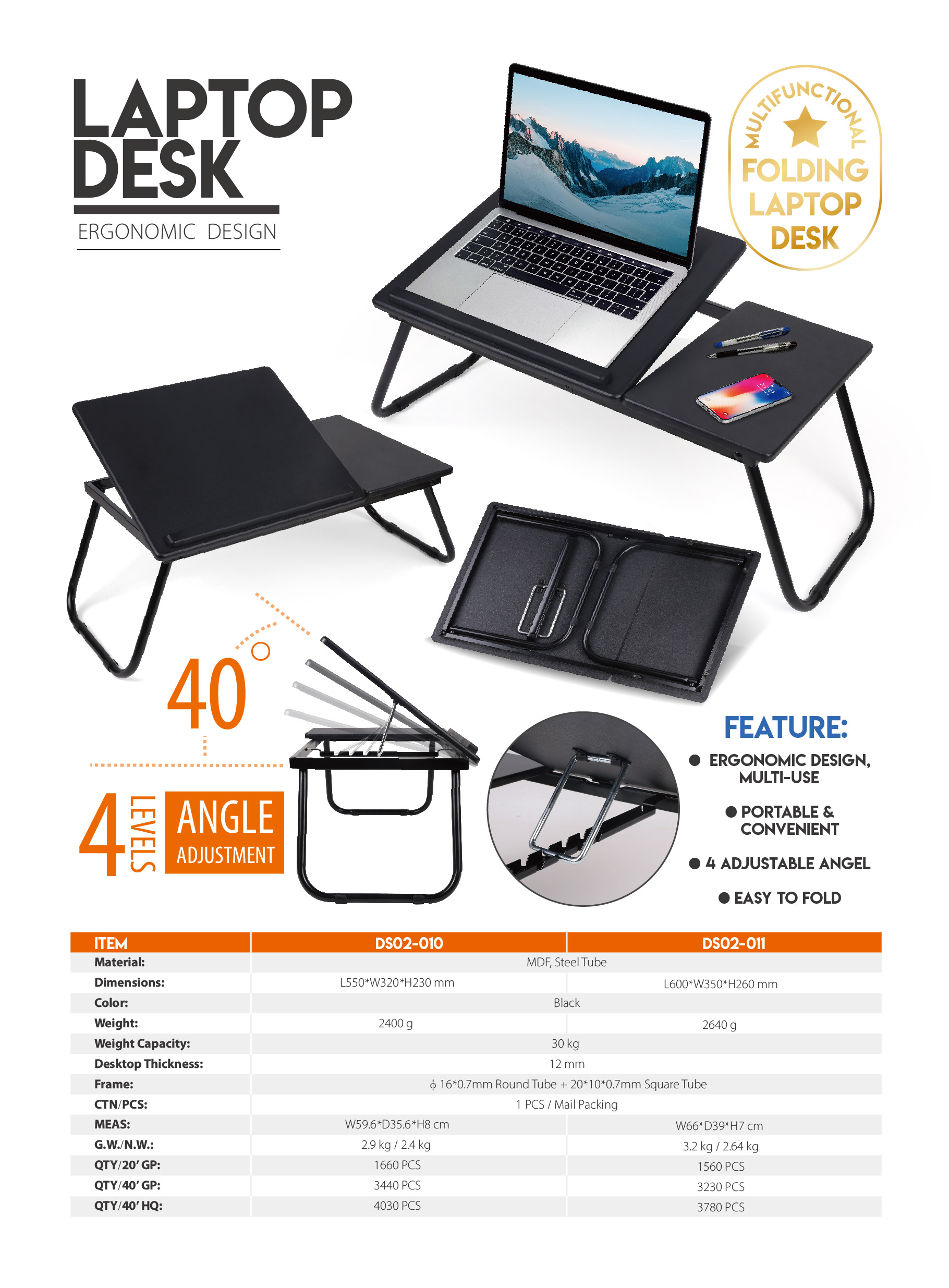 DS02-010Ergonomic design, 4 adjustable angel multi-use, easy to fold, portable & convenient.