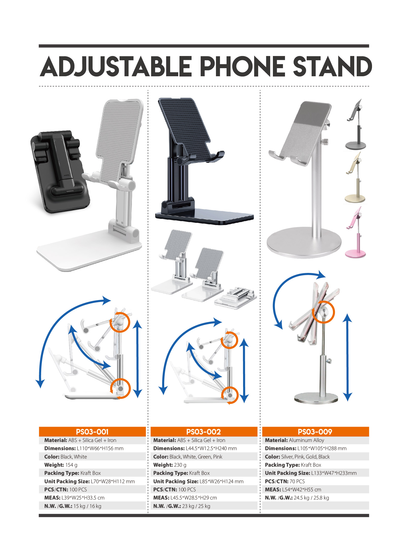 PS03-002You can make your device at optimal viewing position with angle adjustment function. Ideal for watching videos, reading, video recording, or simply browsing the web. Foldable design allows for easier carrying during travel coupled.