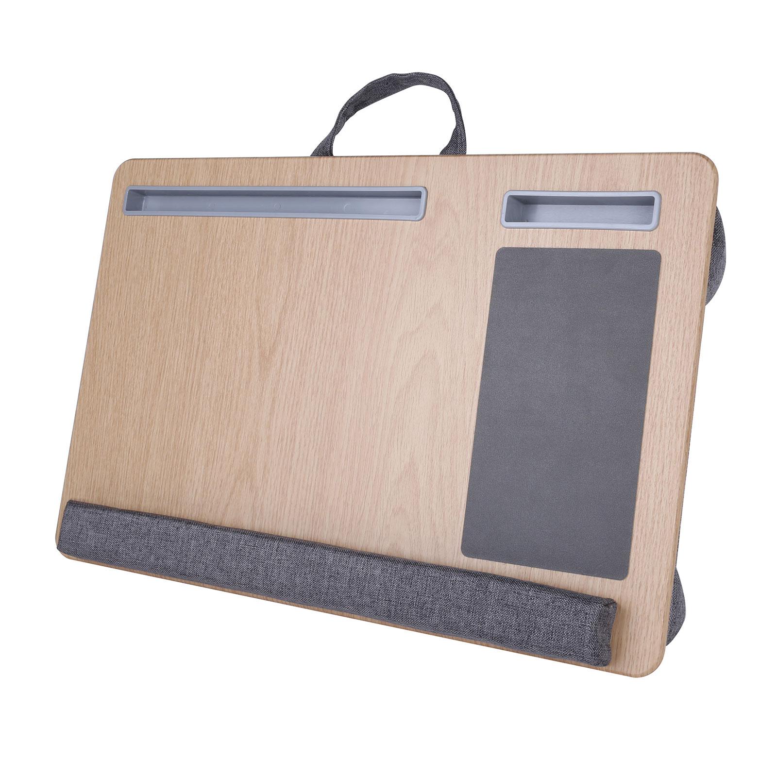 DS05-017It's not just lap desk for laptop, but also could be a quick nap pillow if upturned after long time working. Lightweight and a built-in handle, this lap desk is easy to carry around. Comfortable when using it on your bed, couch, sofa, floor, or even in the car. It could also be hung on the wall for convenient storage.