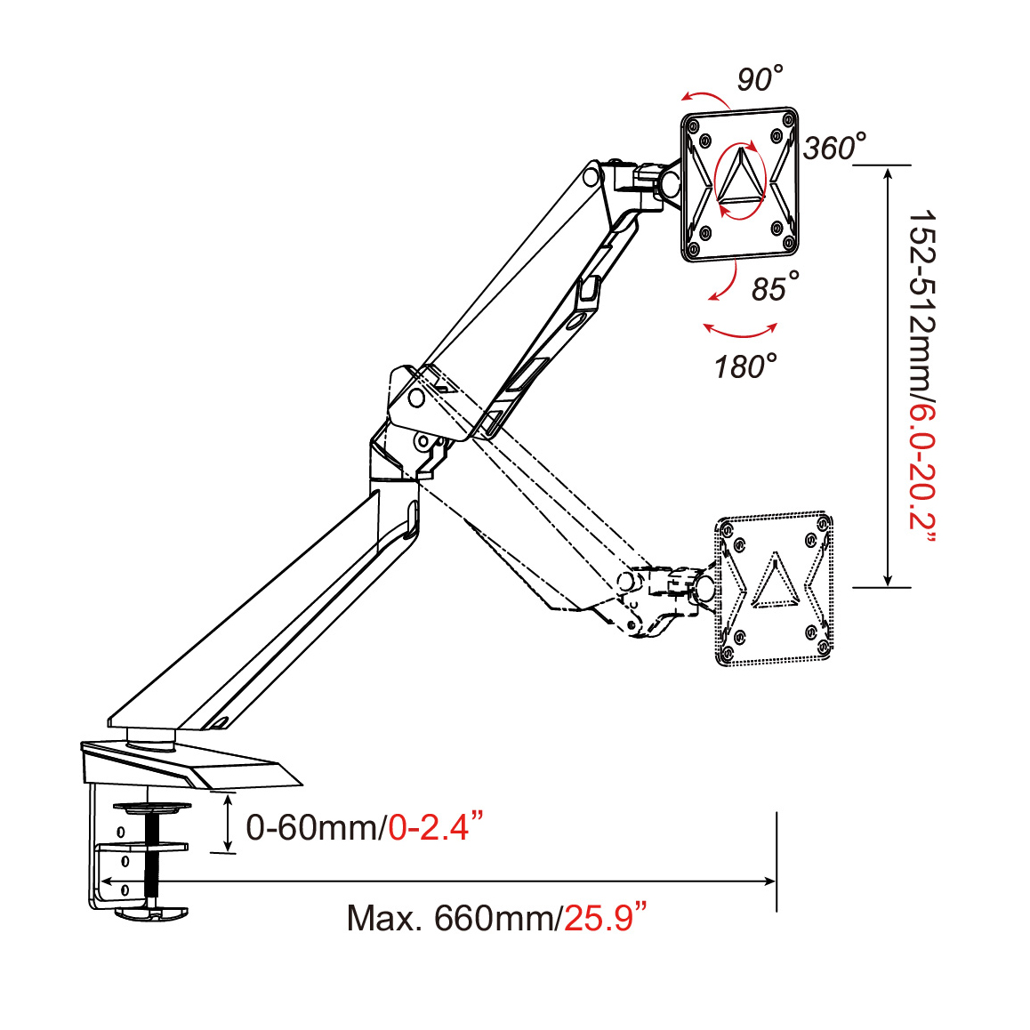 - Tilt Range : +90°~-85°