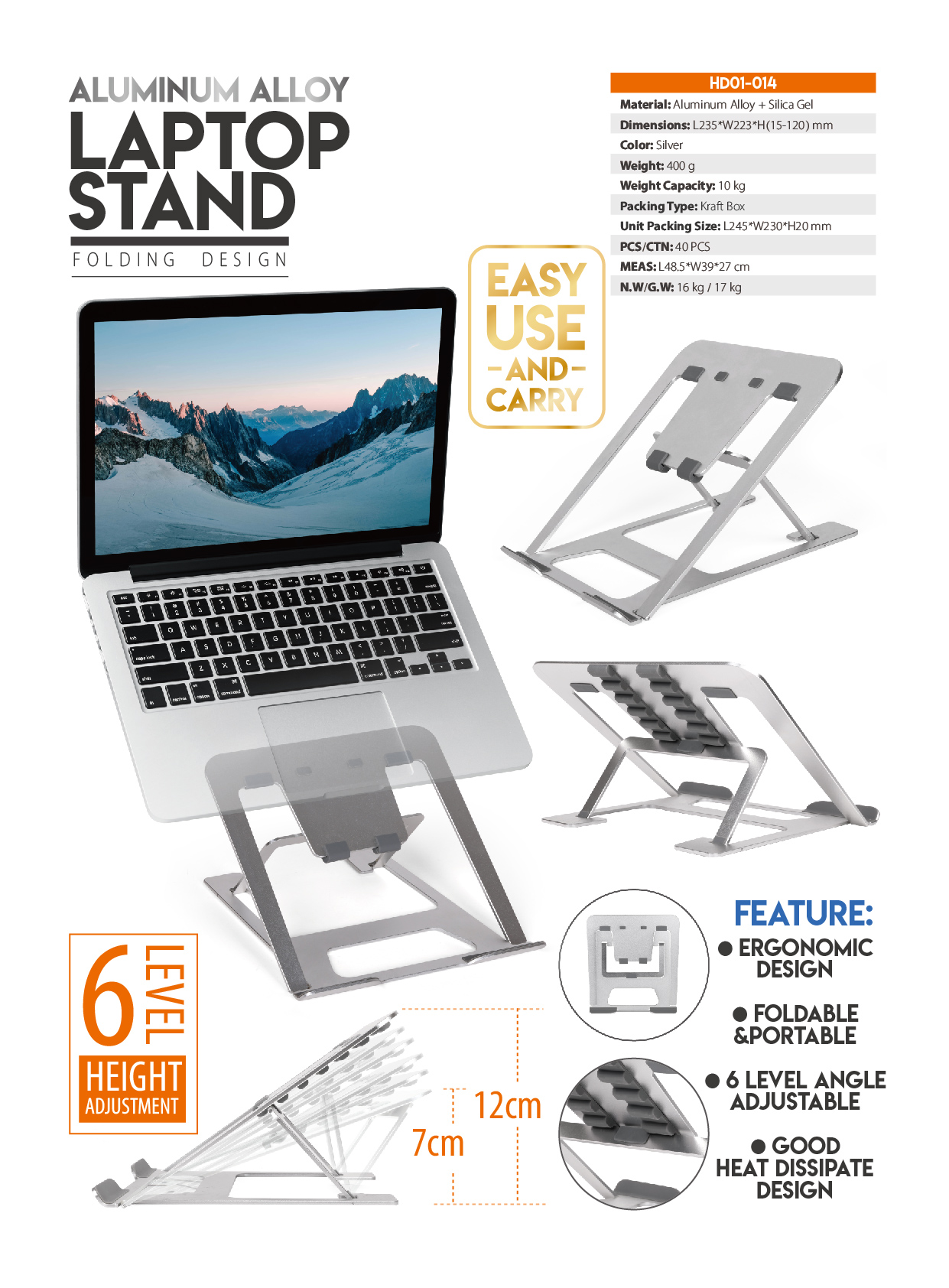 Ergonomic design, foldable &portable, 6 level angle adjustable, good heat dissipate design.