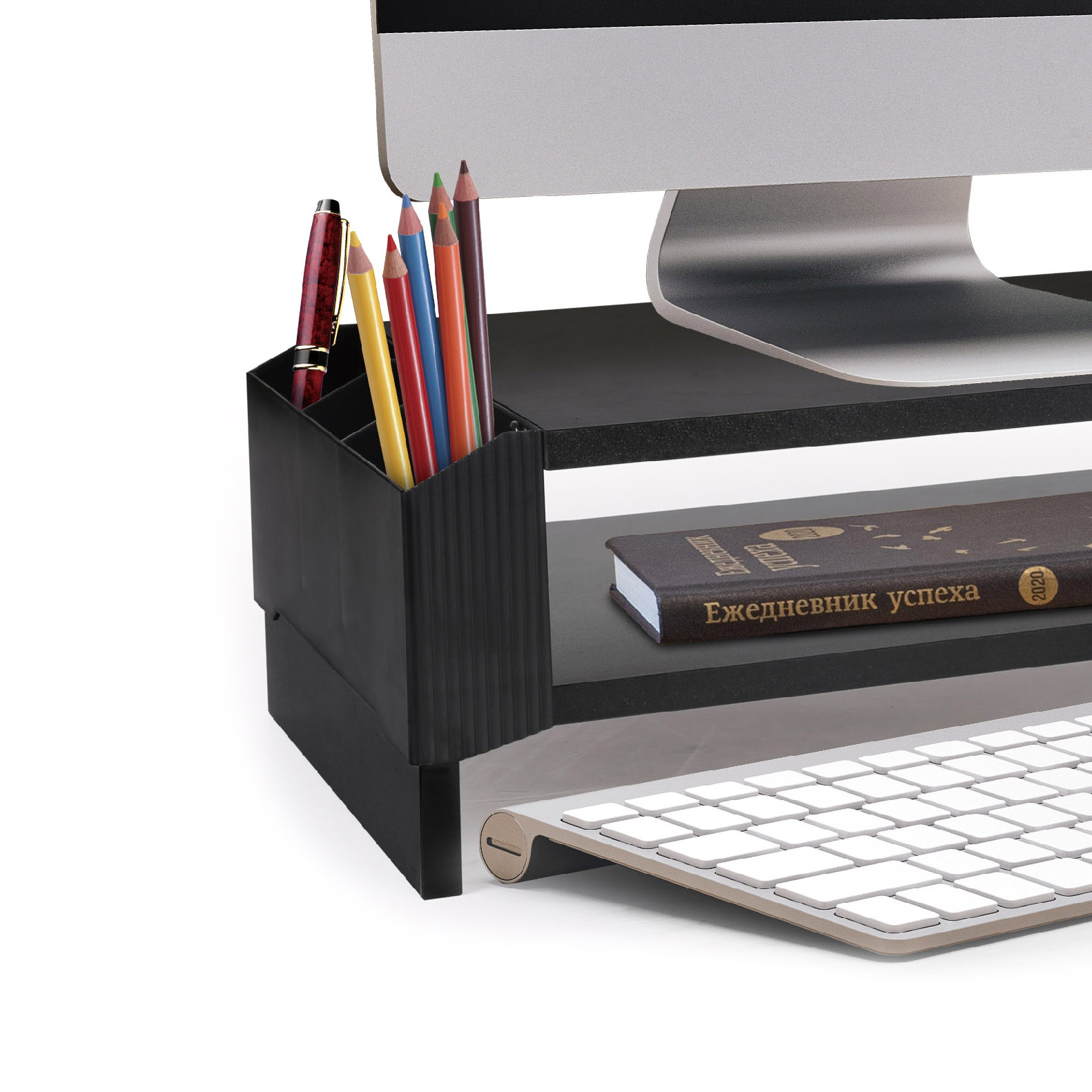 HD02-011Ergonomic design, conform to ergonomics height. 2 Tiers Particle Board Monitor Stand with 6 storage pots, save space, stay organized. Sturdy structure & thoughtful design, easy to assemble.