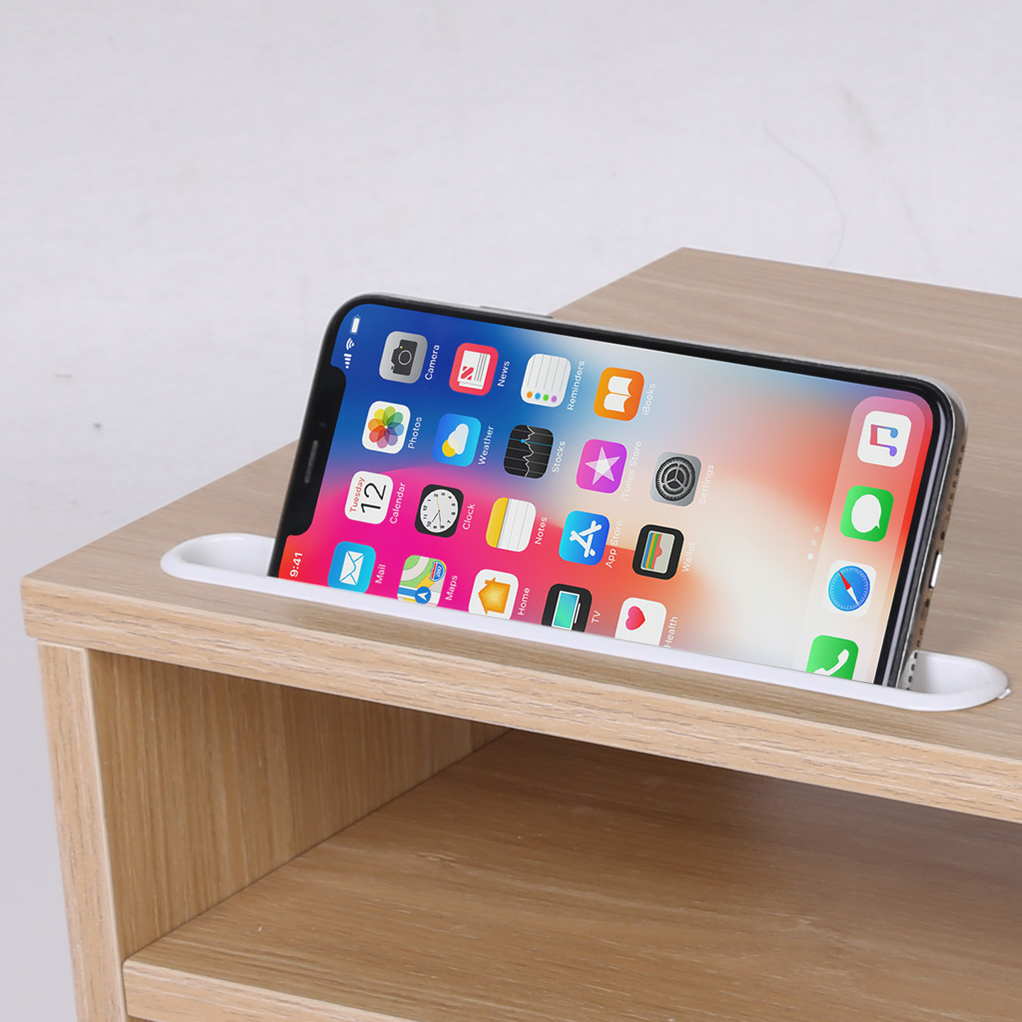 Particle Board Monitor Stand with Phone Holder