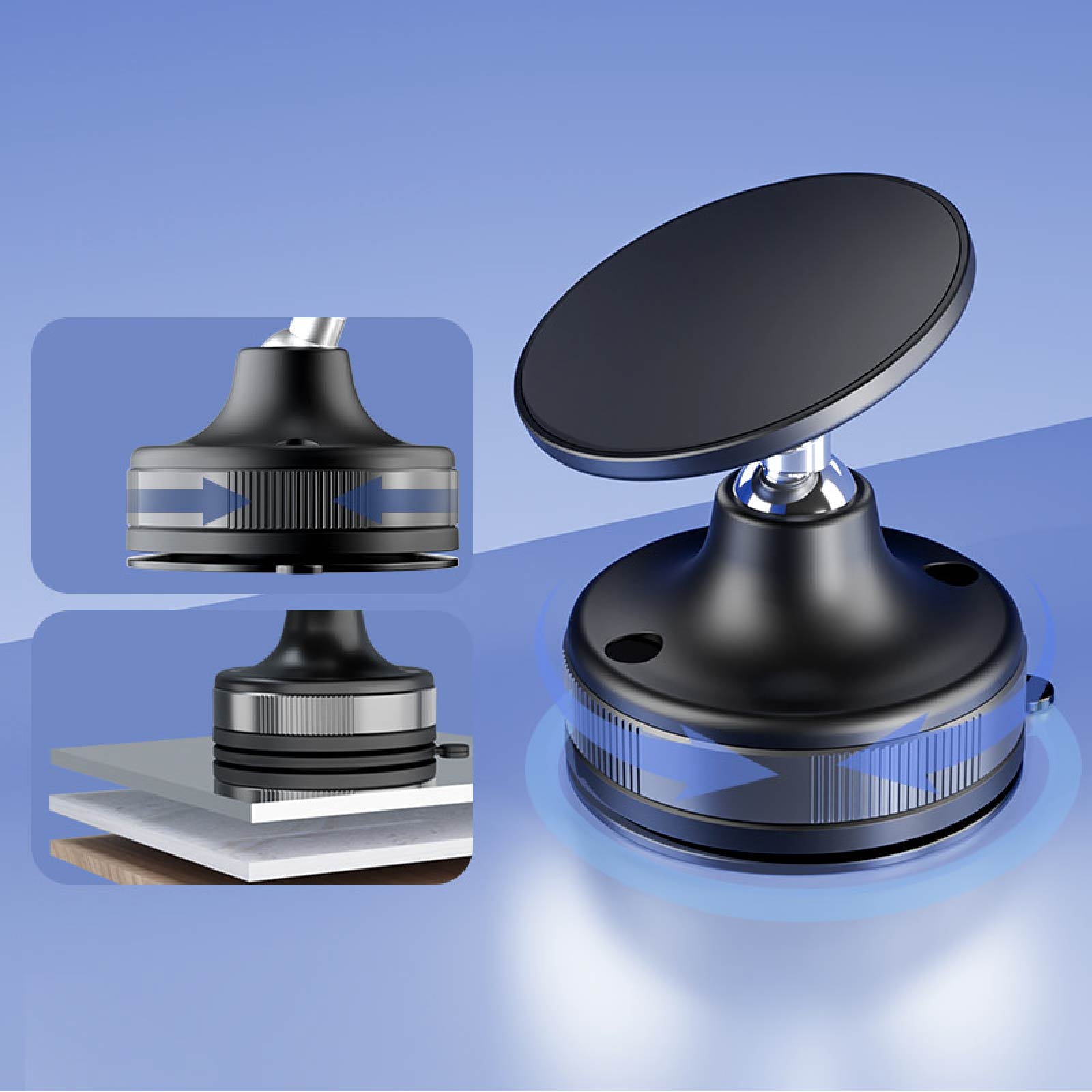 - Functions : Vacuum Suction Cup, Traceless Adhesive, Adheres to Any Smooth Surface, 360° Rotating Base, Magnetic Suction Head with Universal Rotation Adjustment