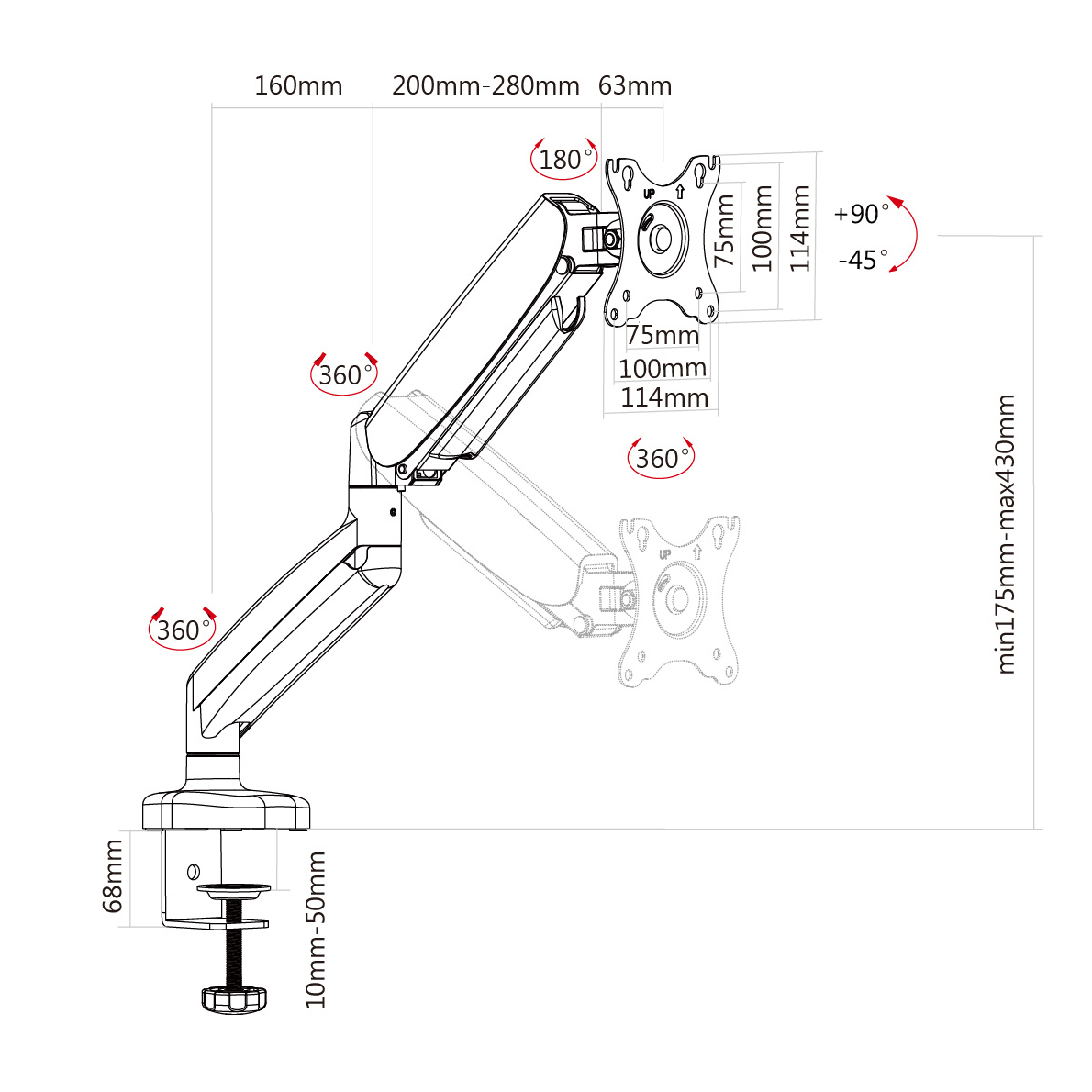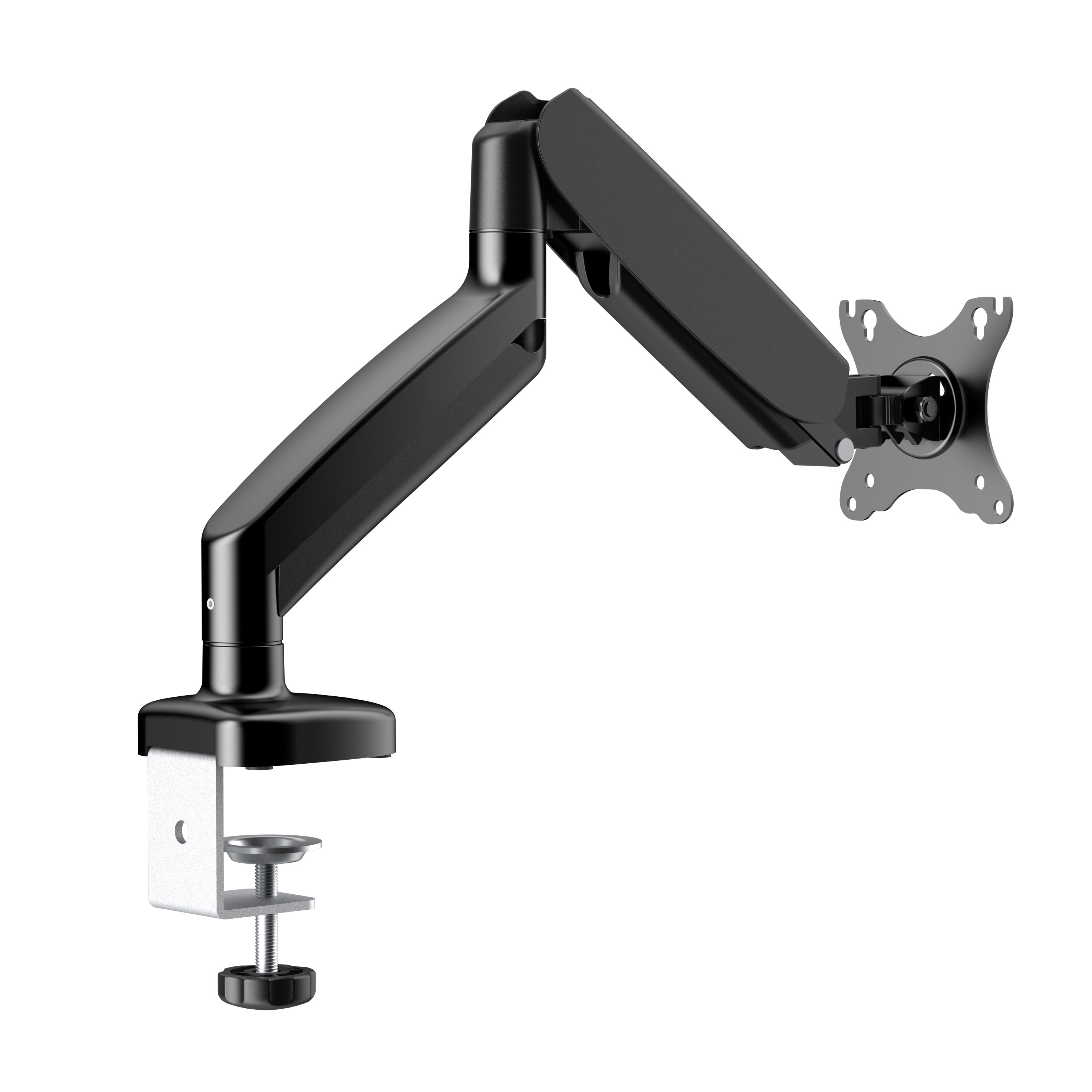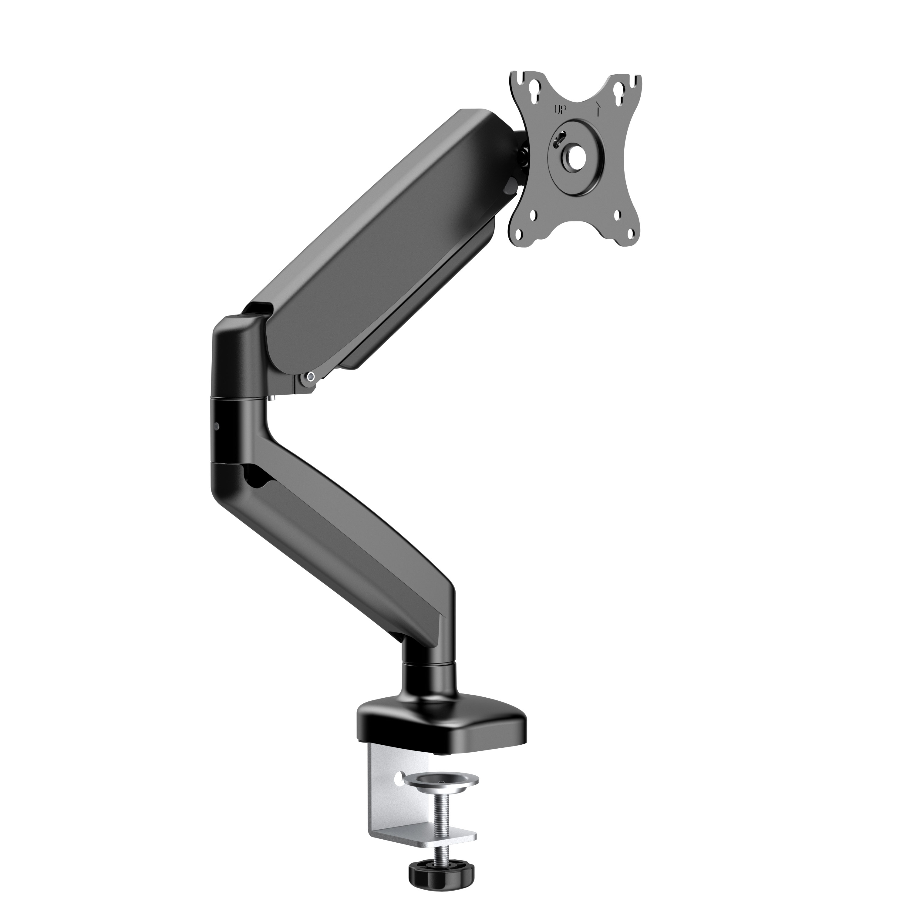 HD05-005Quick-release of arm joint and base for easier installation. Fits LCD, LED flat screen TV and monitor up to 32’’. VESA compatible 75x75 mm or 100x100 mm. The two types of installation monitor mount: C -clamp and grommet base. Gas spring perfectly counterbalances the weight of your monitor. Cable management keeps everything organized. Built-in spring gauge for perfect weight adjustment.