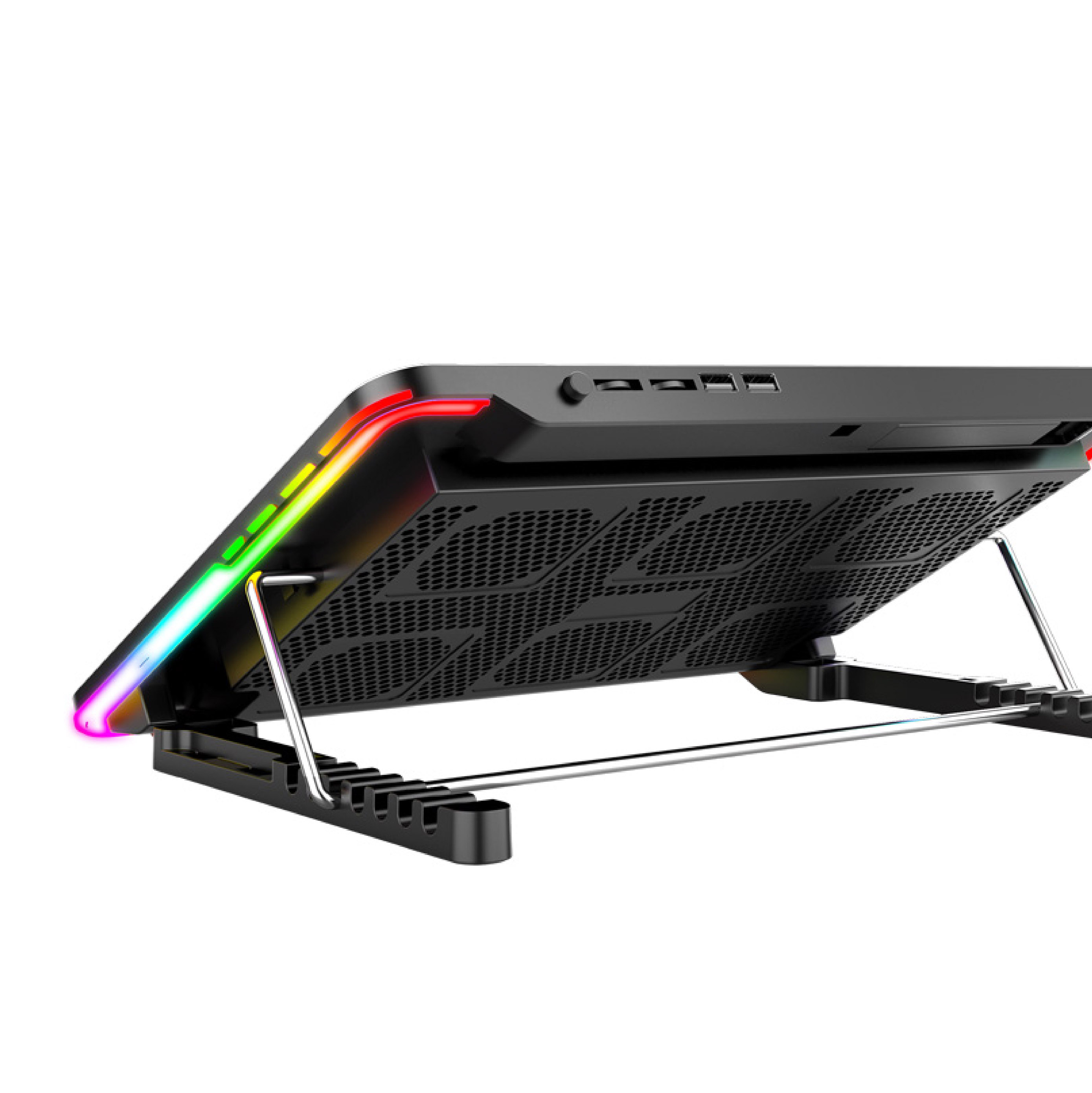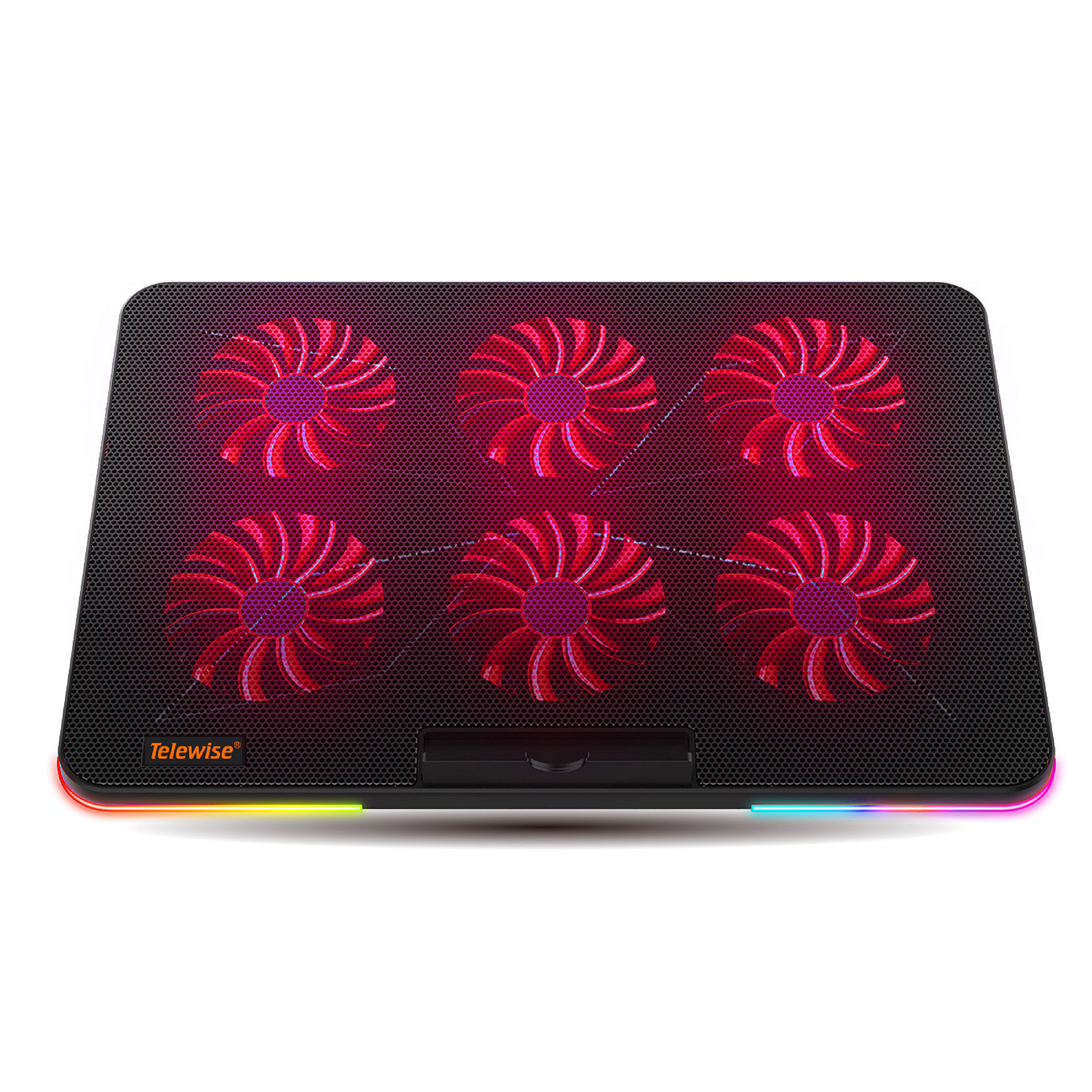 HD06-002Designed For Gaming Use, This Laptop Cooling Stand Can Support Laptops Up To 15.6inch And Below. 2 Usb Ports With 1 Free Usb Cable, Then You Won't Miss Any USB Devices With This Gaming Notebook Cooling Pad. Built-in 6 Fans Provide Massive Airflow To Cool The Whole Laptop Stand With No Blind Area. Ergonomic Design With 7 Viewing Angles Available For The Most Comfort In Use. Massive Metal Mesh Panel For Super Cooling Performance. The Storm Blows All Heat Under The Laptop From The Bottom-up, With Mute Motor And No Noise Cooling Fan. 10 Kinds Of Light Modes With Phone Stand.