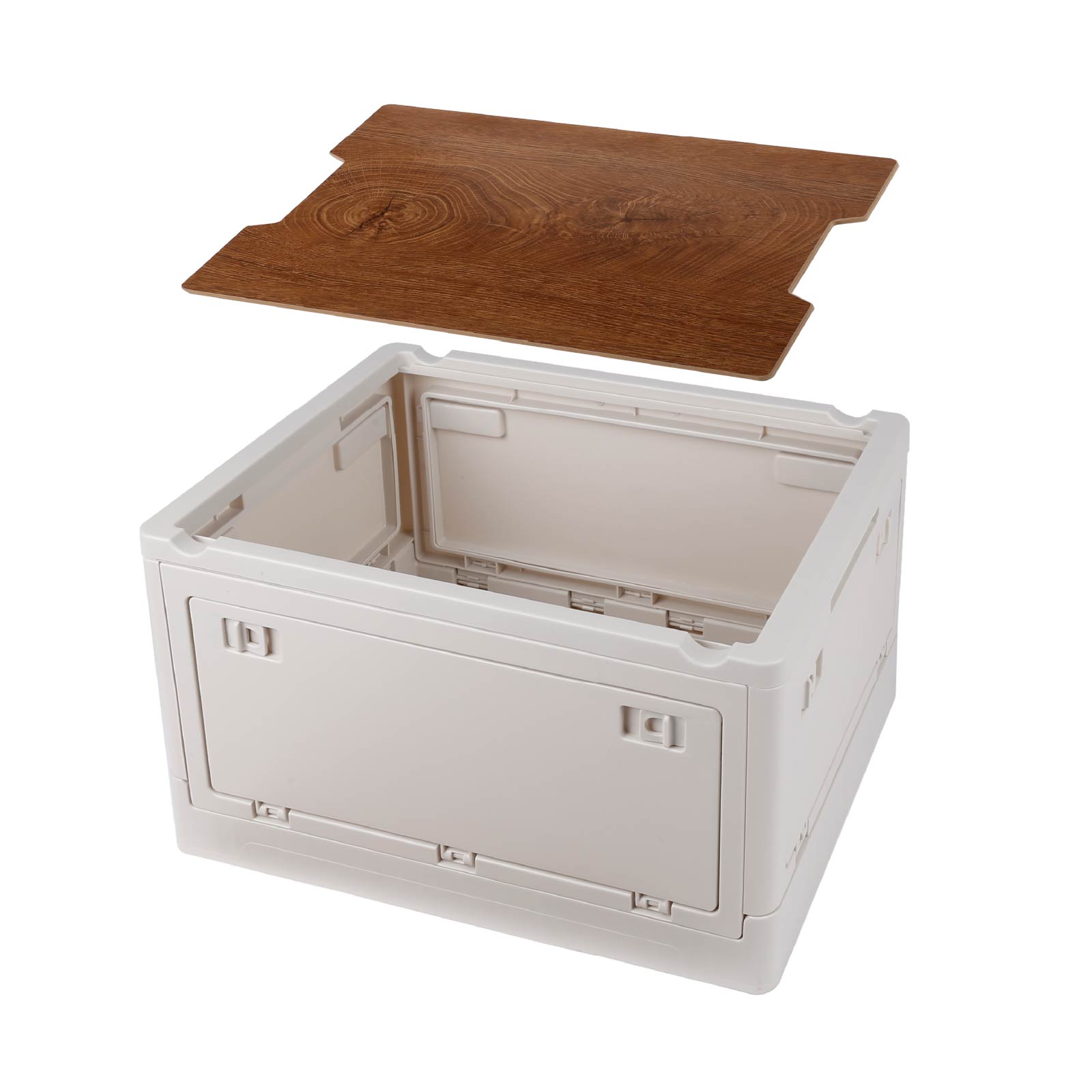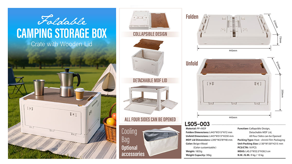 Foldable Camping Storage Box crate with Wooden lid