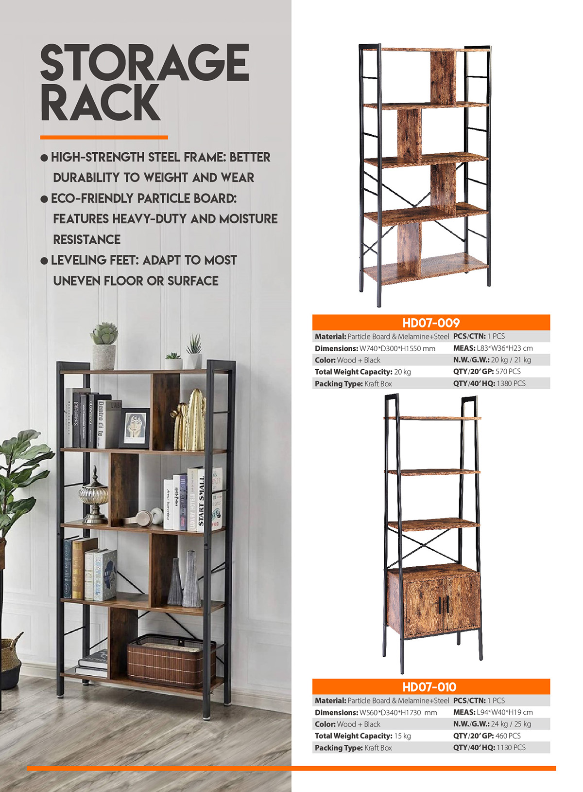 HD07-009High-Strength Steel Frame: better durability to weight and wear. Eco-Friendly Particle Board: features heavy-duty and moisture resistance. Leveling Feet: adapt to most uneven floor or surface.