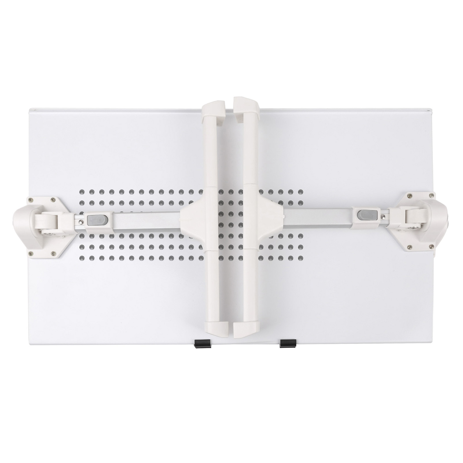 DS02-0135 Height Settings: for optimal viewing height. Easy to adjust, no tools required. Foldable Design: saves your space for easy storage when not in use. Safety Ledge Stopper: prevents your devices from slipping. Tiltable Desktop: promotes the most ergonomic, comfortable working angle.