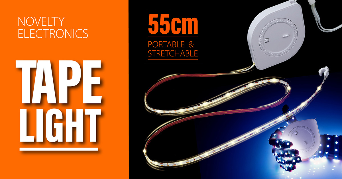 55cm Length, portable & strelchable tape light. White Light, 3 Modes (Full Brightness Light, 50% Brightness Light, Flash Light) .