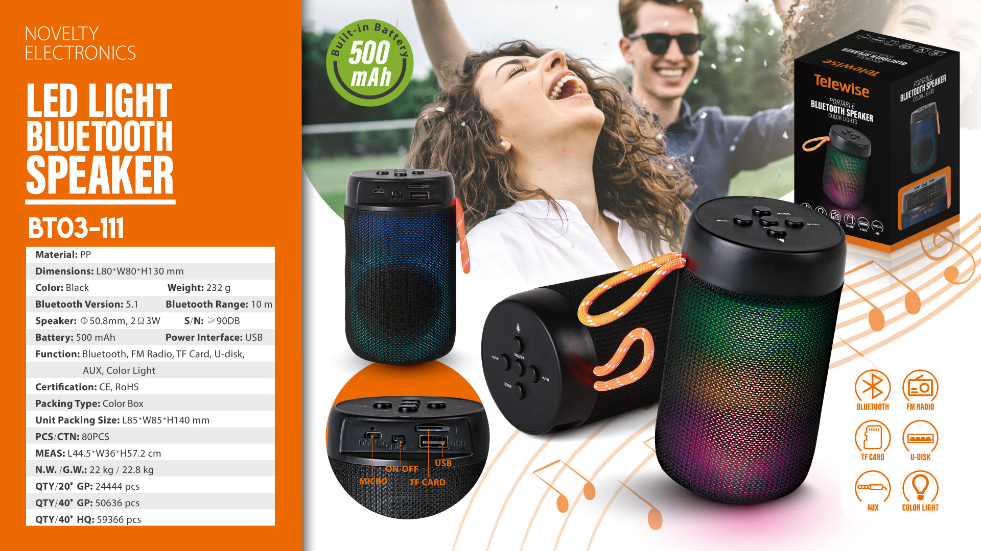 The perfect sound quality makes the Bluetooth speaker ideal for outdoors and indoors to enjoy your music. The portable and compact design also makes the speaker used as a unique led night light, which creates a romantic atmosphere to light up your space.