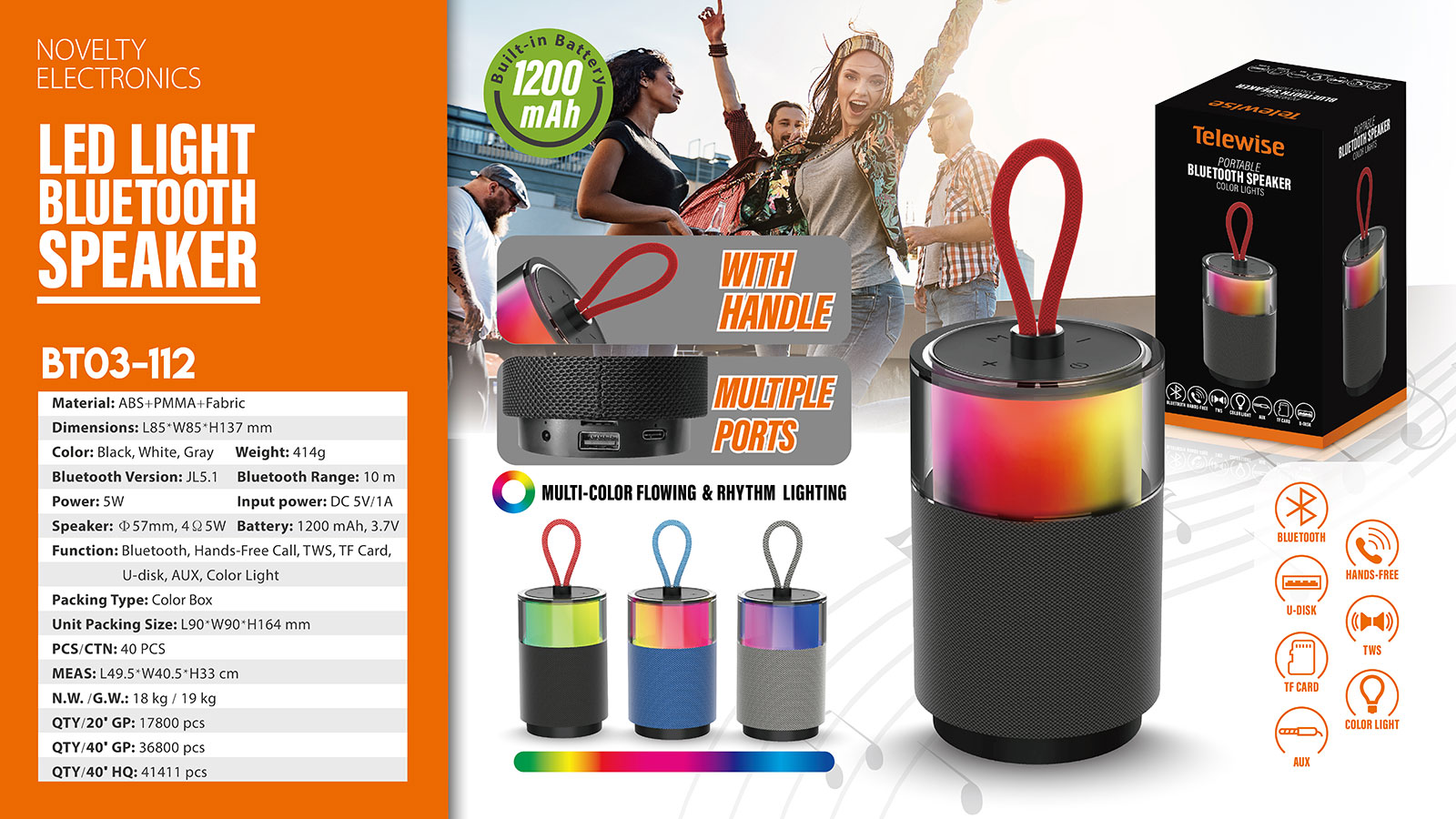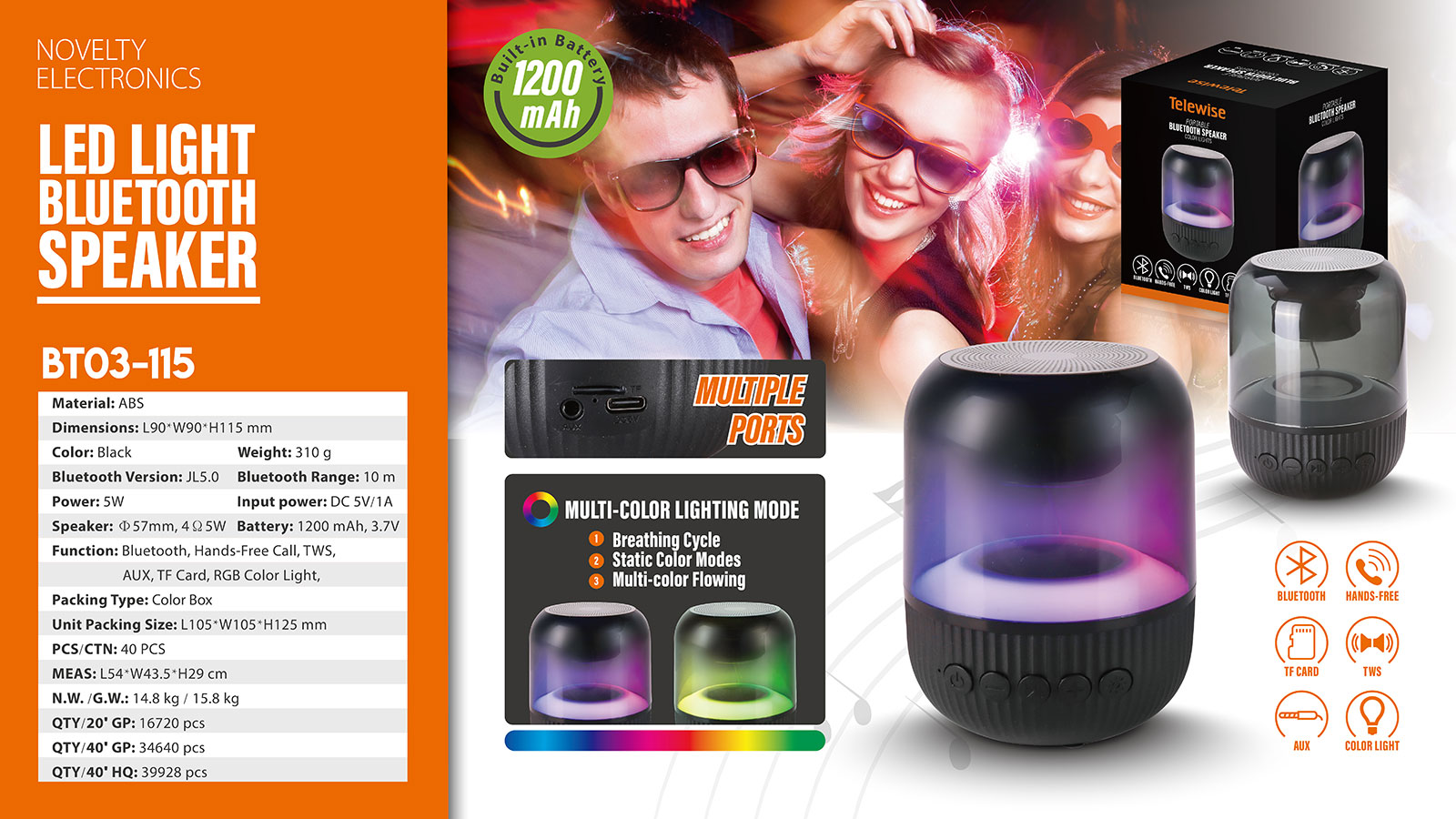 The perfect sound quality makes the Bluetooth speaker ideal for outdoors and indoors to enjoy your music. The portable and compact design also makes the speaker used as a unique led night light, which creates a romantic atmosphere to light up your space.