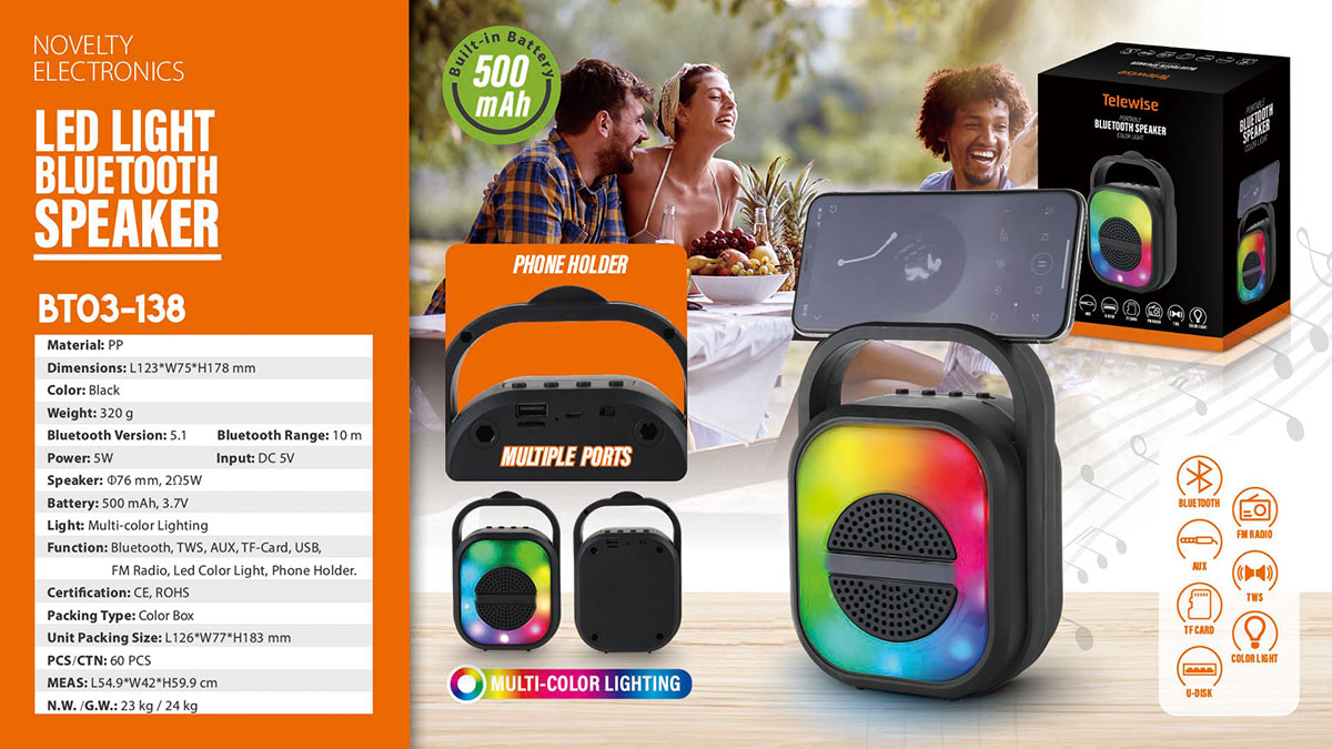 The perfect sound quality makes the Bluetooth speaker ideal for outdoors and indoors to enjoy your music. The portable and compact design also makes the speaker used as a unique led night light, which creates a romantic atmosphere to light up your space.