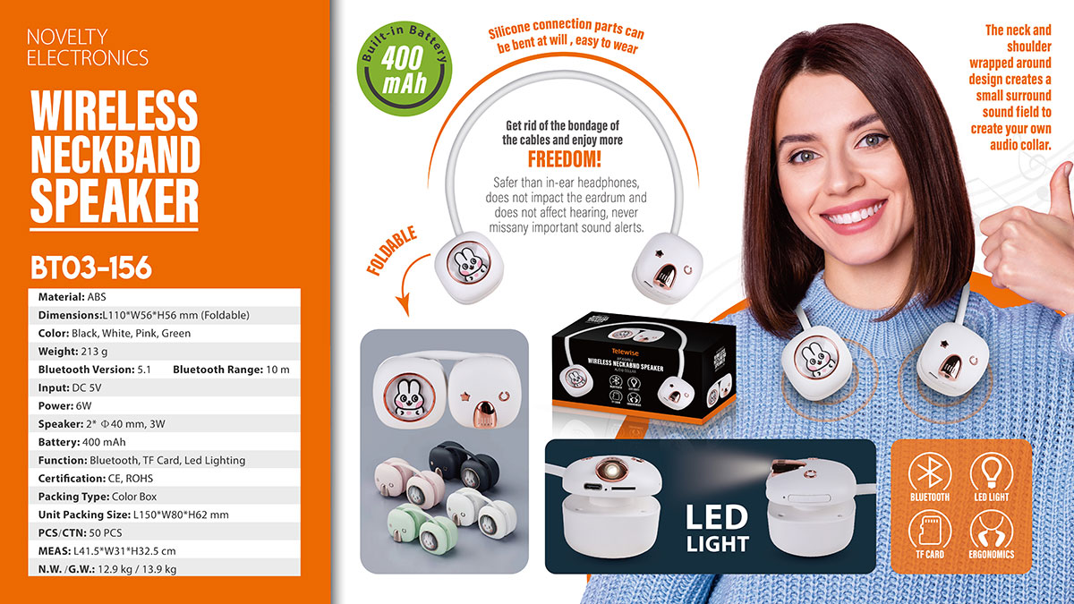 Foldable & Portable! Open your ears and sense sounds around You. Safer than in-ear headphones, does not impact the eardrum and does not affect hearing, never missany important sound alerts. The neck and shoulder wrapped around design creates a small surround sound field to create your own audio collar. Get rid of the bondage of the cables and enjoy more Freedom. Silicone connection parts can be bent at will, easy to wear.