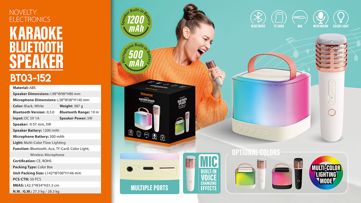 Mini karaoke bluetooth speaker set includes portable speaker & small and exquisite microphones ( with different sound effects). Lightweight karaoke machine with internal rechargeable battery,With a leather wristband, this retro speaker is sturdy and portable to take anywhere,Perfect for family outing, karaoke party, house party, church, hotel conference room, classroom, lecture room, gymnasium, fitness center, workspace, playroom and any party venue.