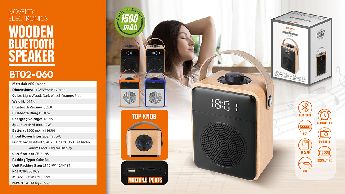 Bluetooth Speaker , FM Radio, Alarm Clock are integrated into one design.