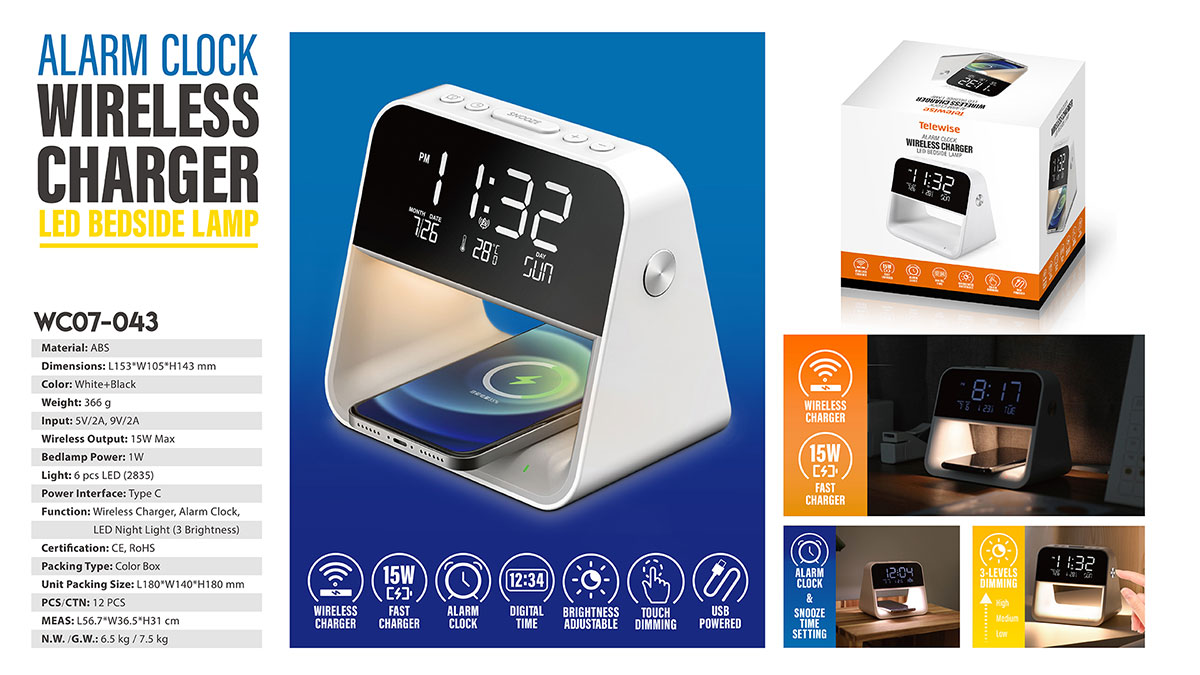 3 In 1 Wireless Charger & LED Bedside Lamp , are integrated into one design.