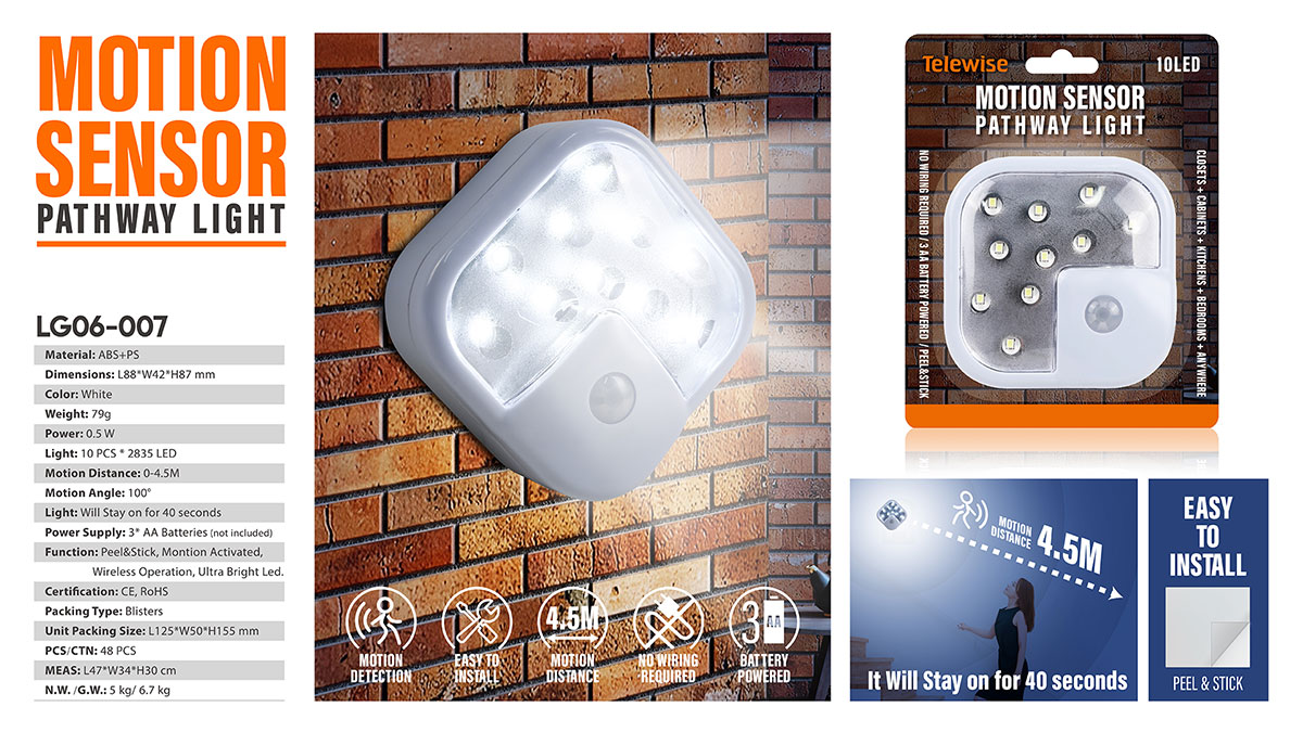 No batteries, no wires! Peel&Stick, Sensor Light, Wireless Operation.